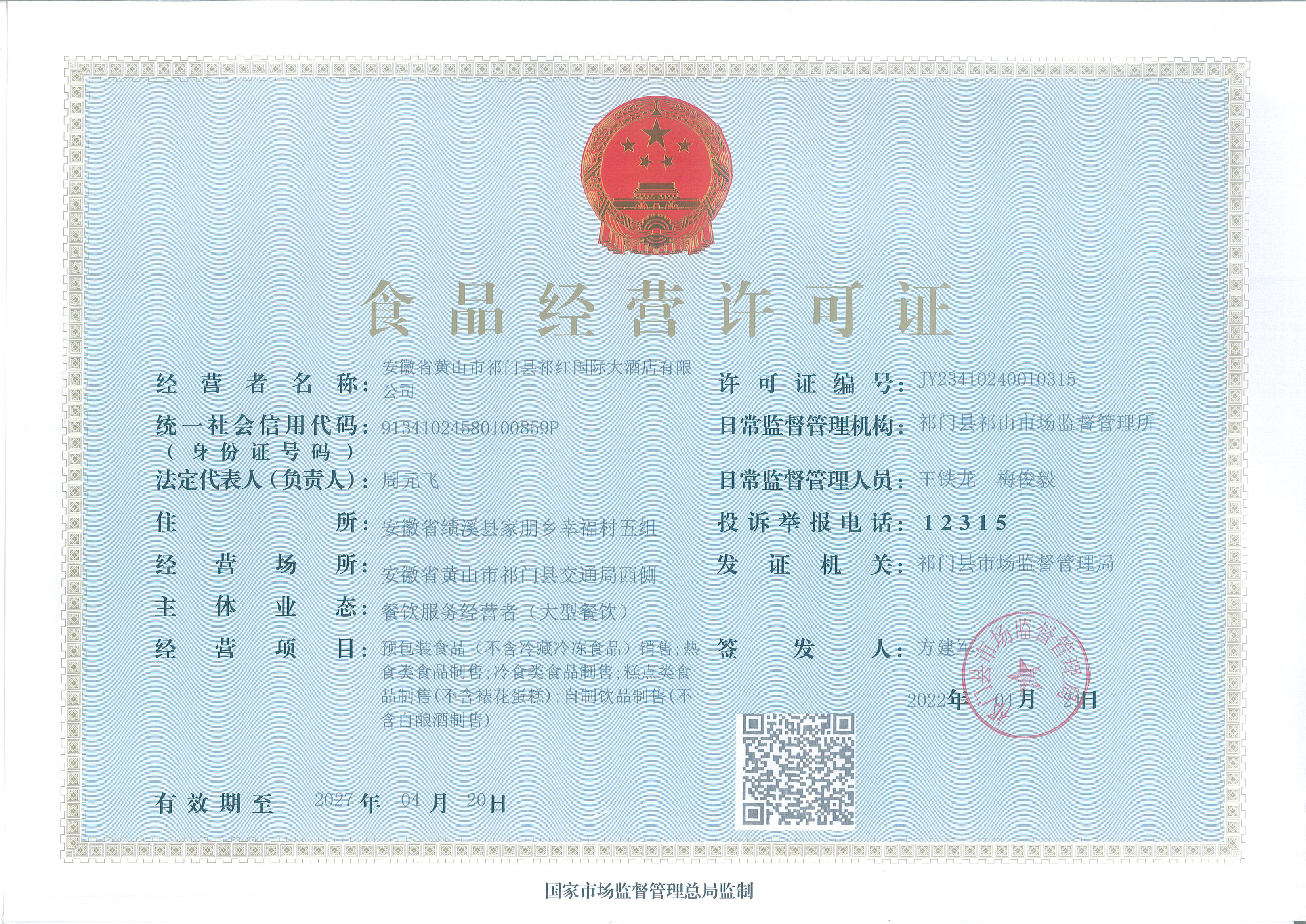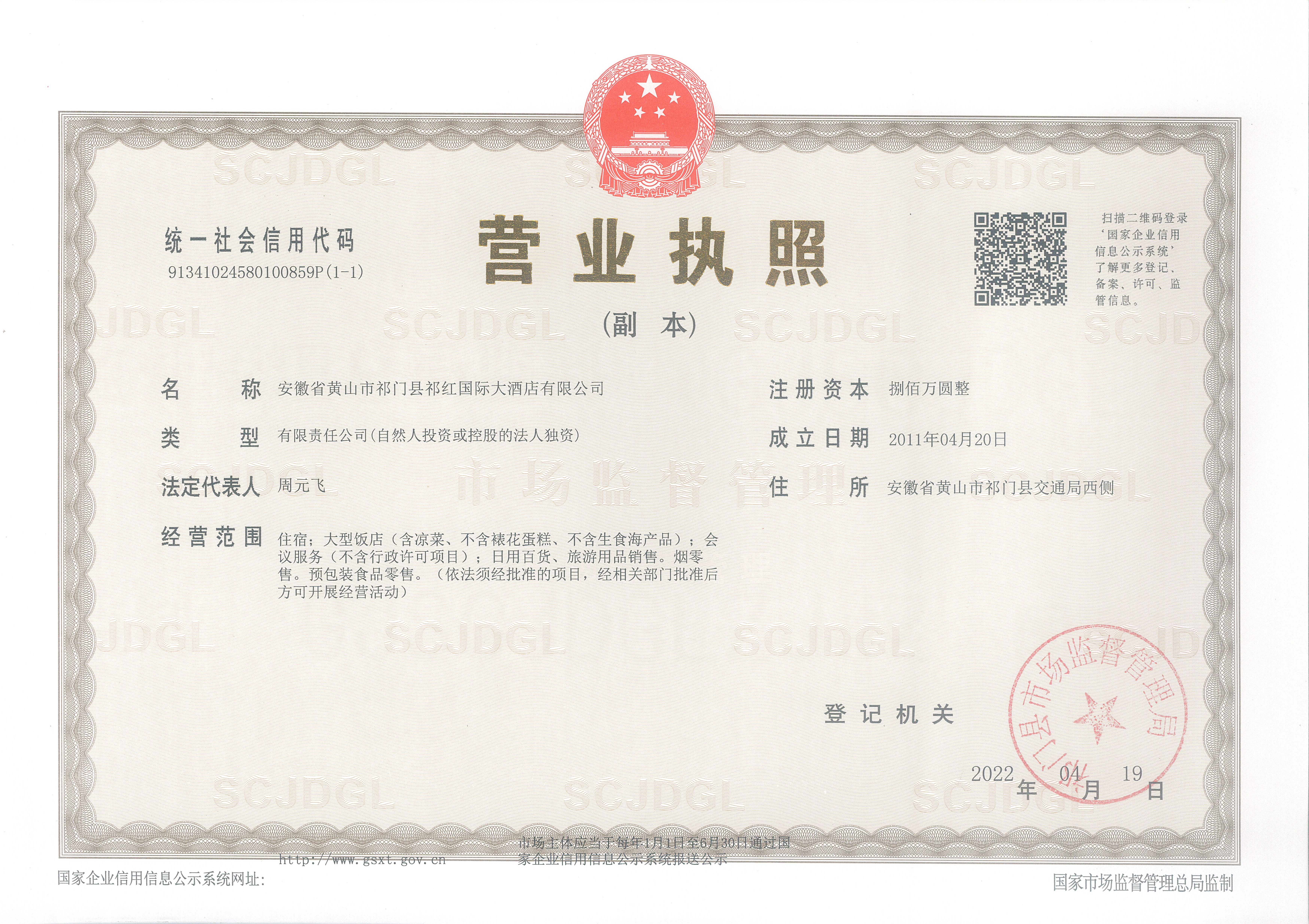 营业场所:安徽省黄山市祁门县