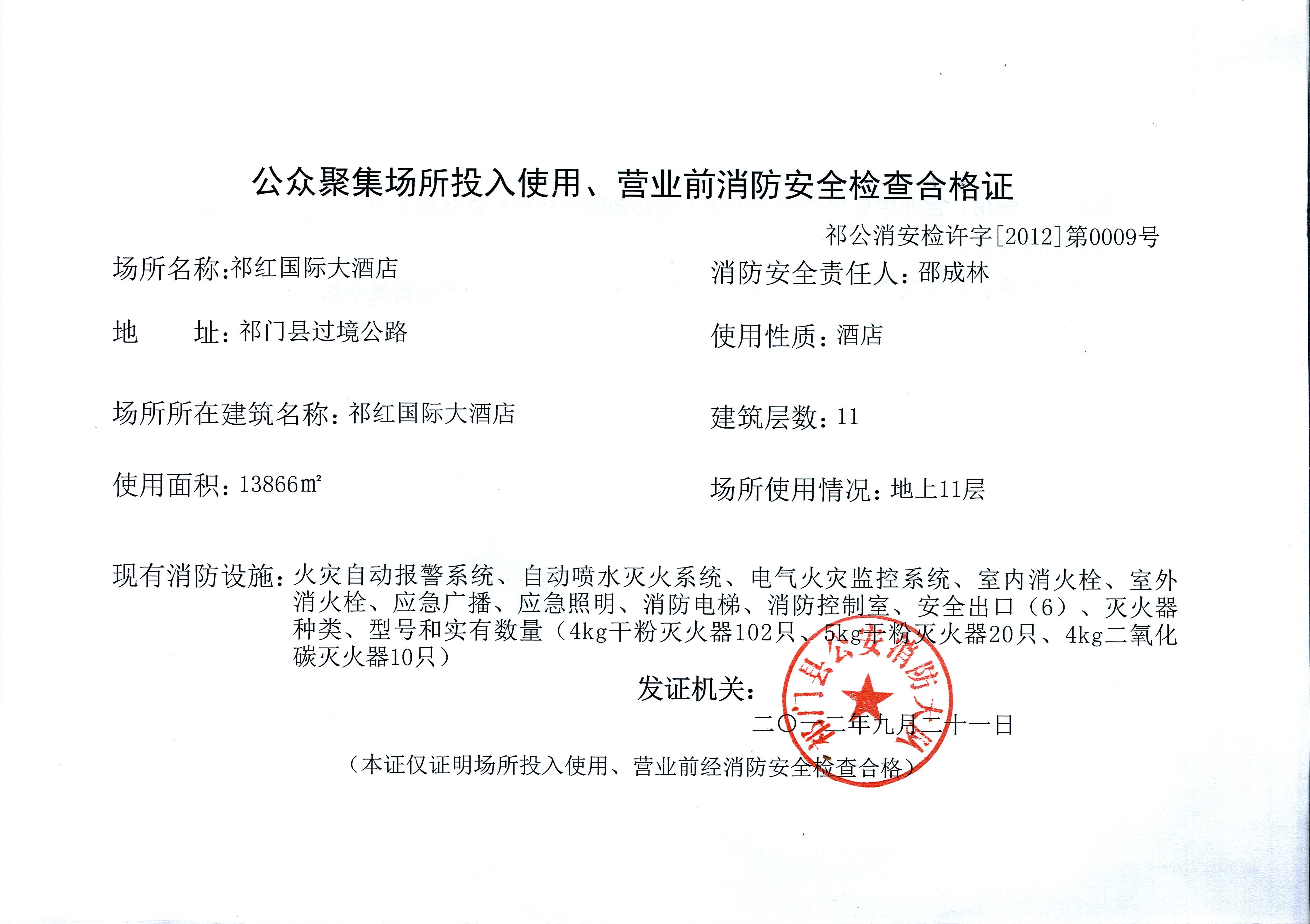 有效期内的消防安全检查合格证明:消防安全合格证.***