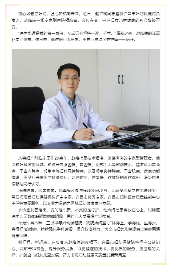 【妇幼新篇】专家领航 守护安康|赵维楠同志履新许昌市妇幼保健院负责人