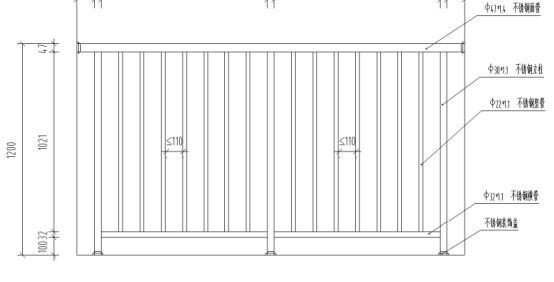 *.技术参数:高度******。材料规格:面管:Φ******.***,立柱:Φ****.***,横管:Φ****.***,竖管:Φ****.***。竖管间距≤*****,立柱间距≤*****,平均分配。