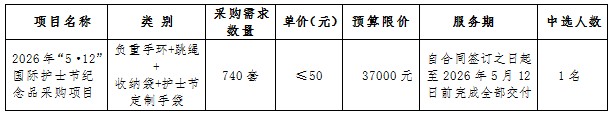 (一)项目名称:****年******;********;********;国际护士节纪念品采购项目