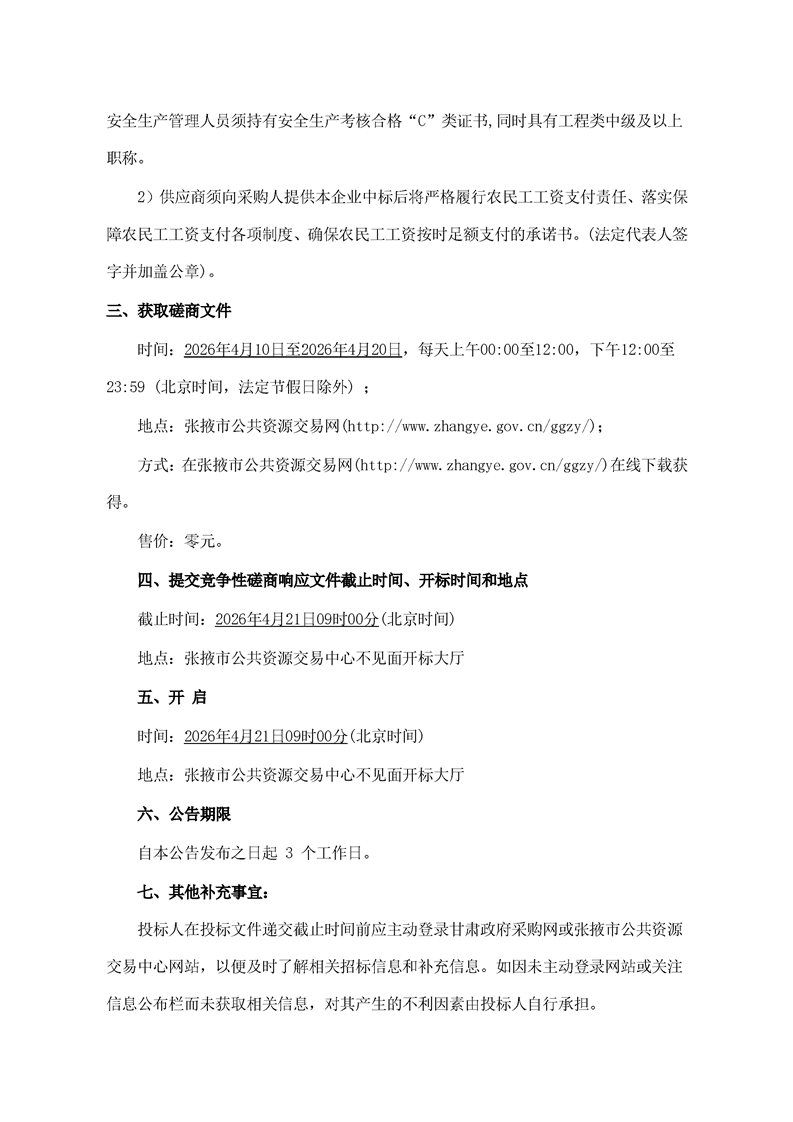 甘肃/张掖 招标采购