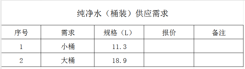 根据《中华人民共和国政府采购法》、项目管理流程及上级文件精神,结合我院实际情况,经研究决定,现决定对饮用纯净水(桶装)配送服务单位进行公开遴选,现以询价方式择优确定服务单位,欢迎符合条件的服务单位前来报价,具体如下: