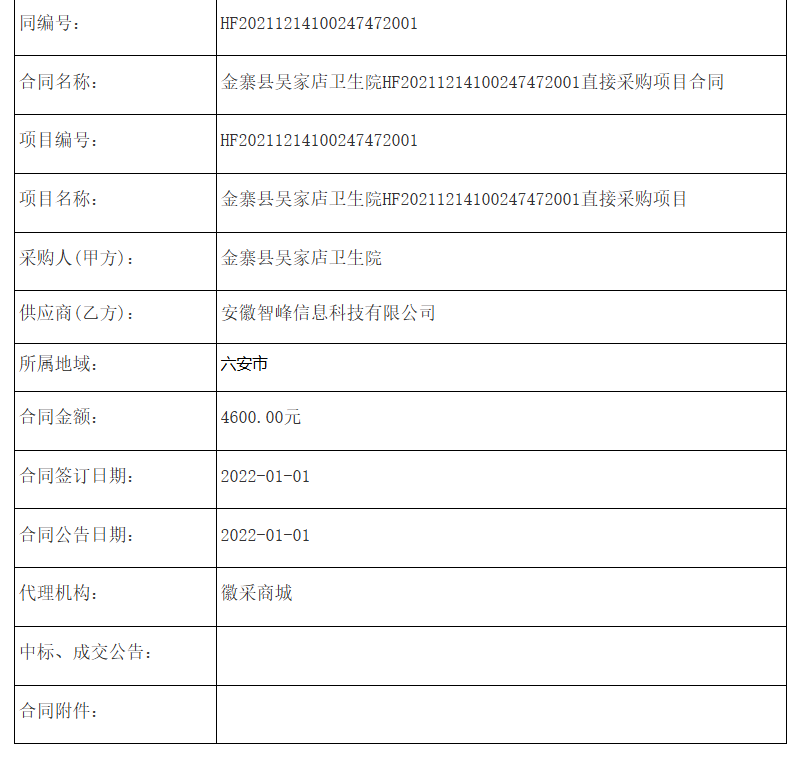 金寨县吴家店卫生院HF20211214100247472001直接采购项目合同