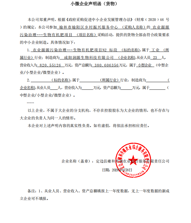 货物类(定边县雍和开禧农业综合服务有限责任公司)