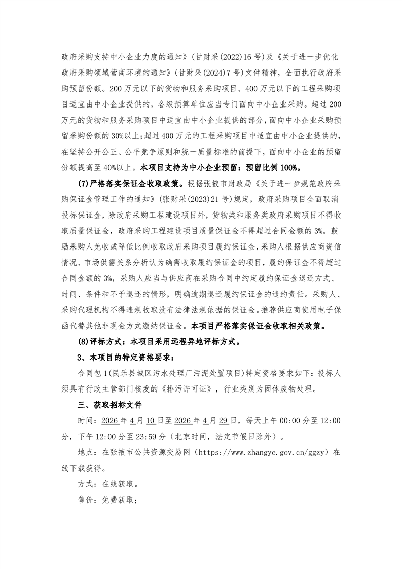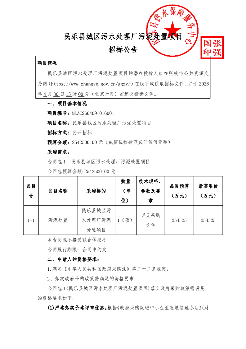 民乐县城区污水处理厂污泥处置项目[采购/资审公告]