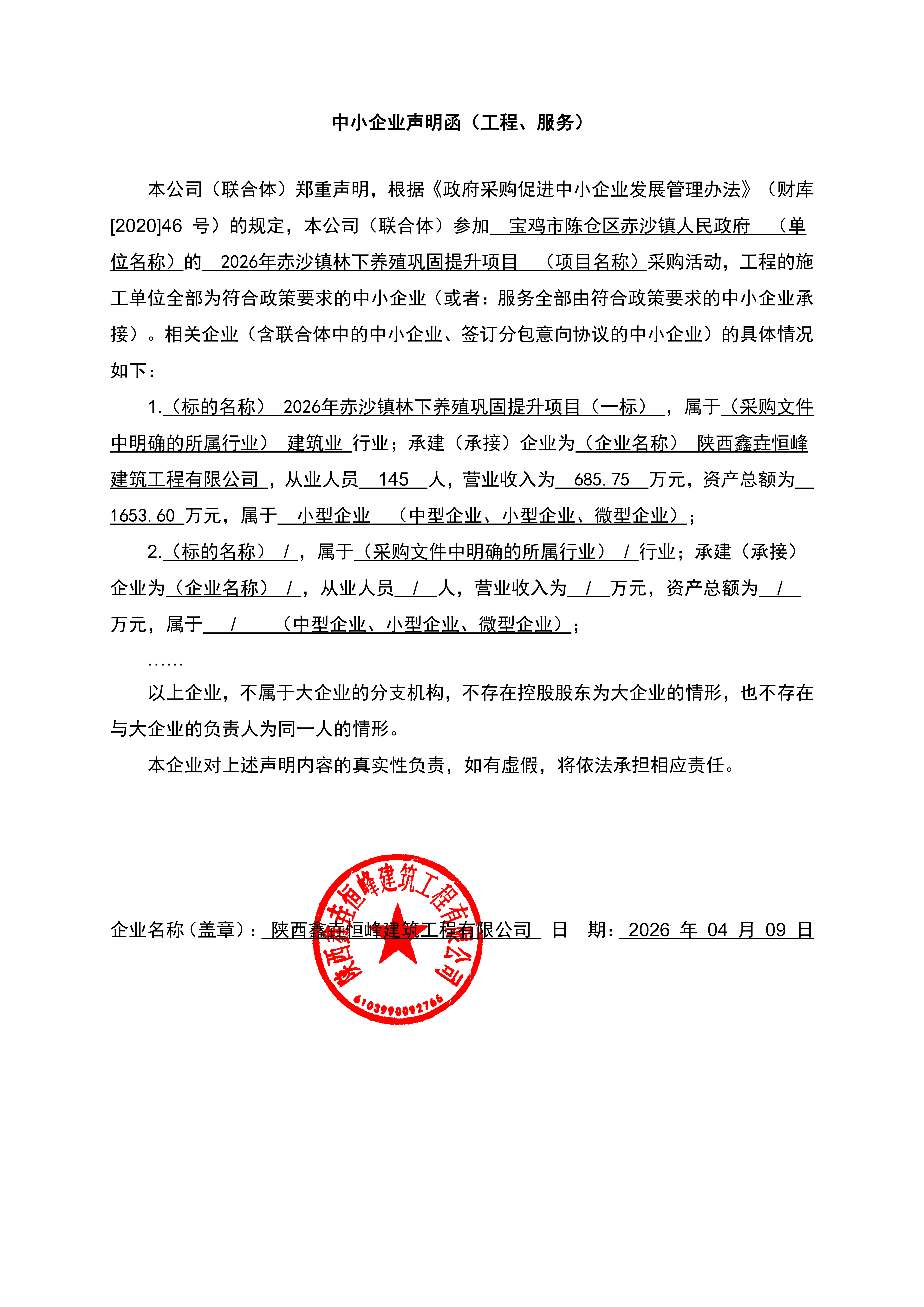 工程类(陕西鑫垚恒峰建筑工程有限公司)