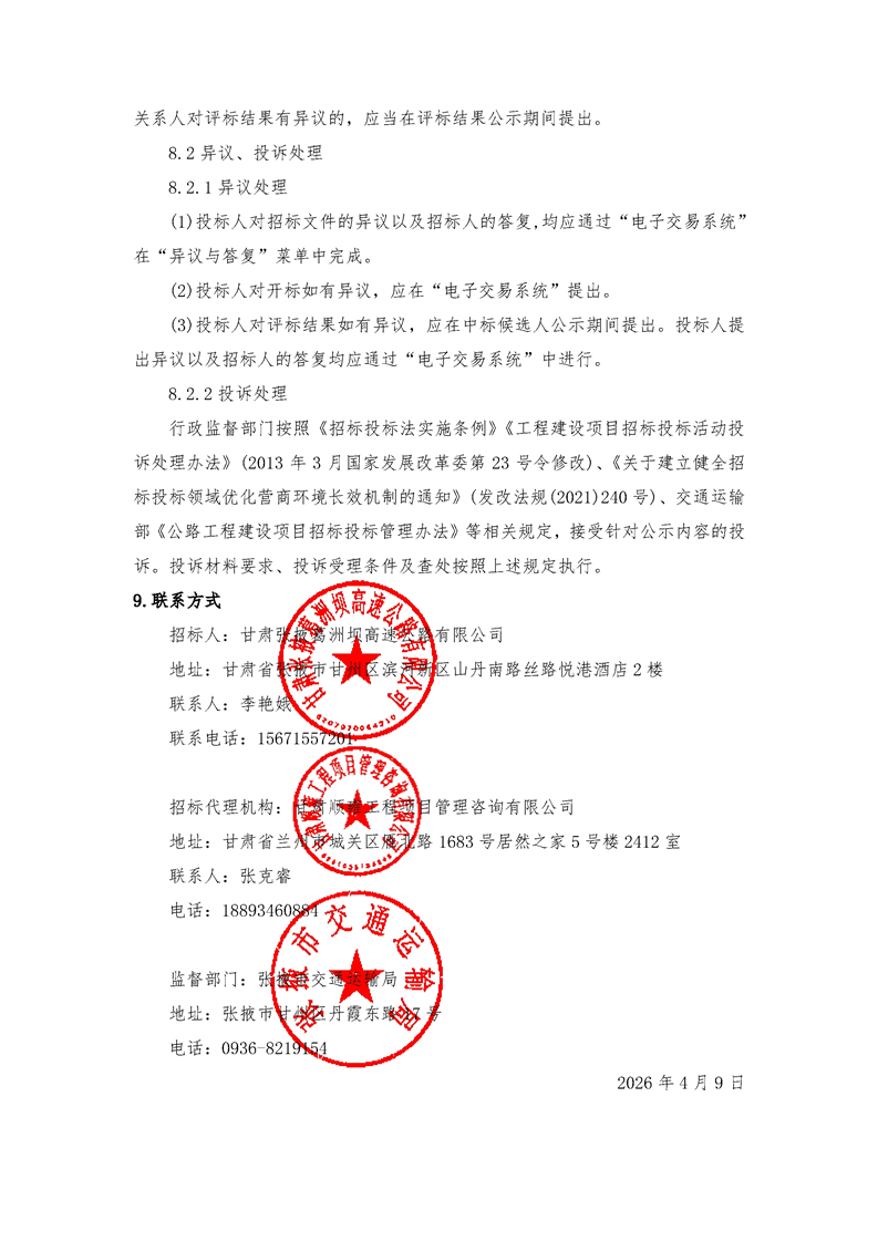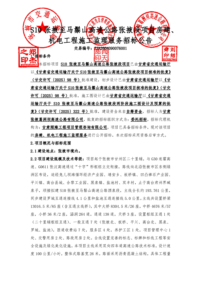 S10张掖至马鬃山高速公路张掖段项目房建、机电工程施工监理服务招标公告[招标/资审公告]