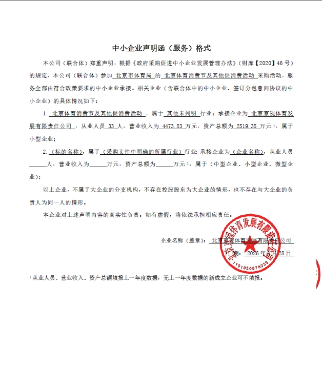 中标成交供应商名称:北京京视体育发展有限责任公司