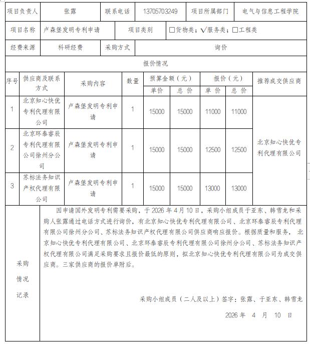 [分散采购]卢森堡发明专利申请服务采购项目公示