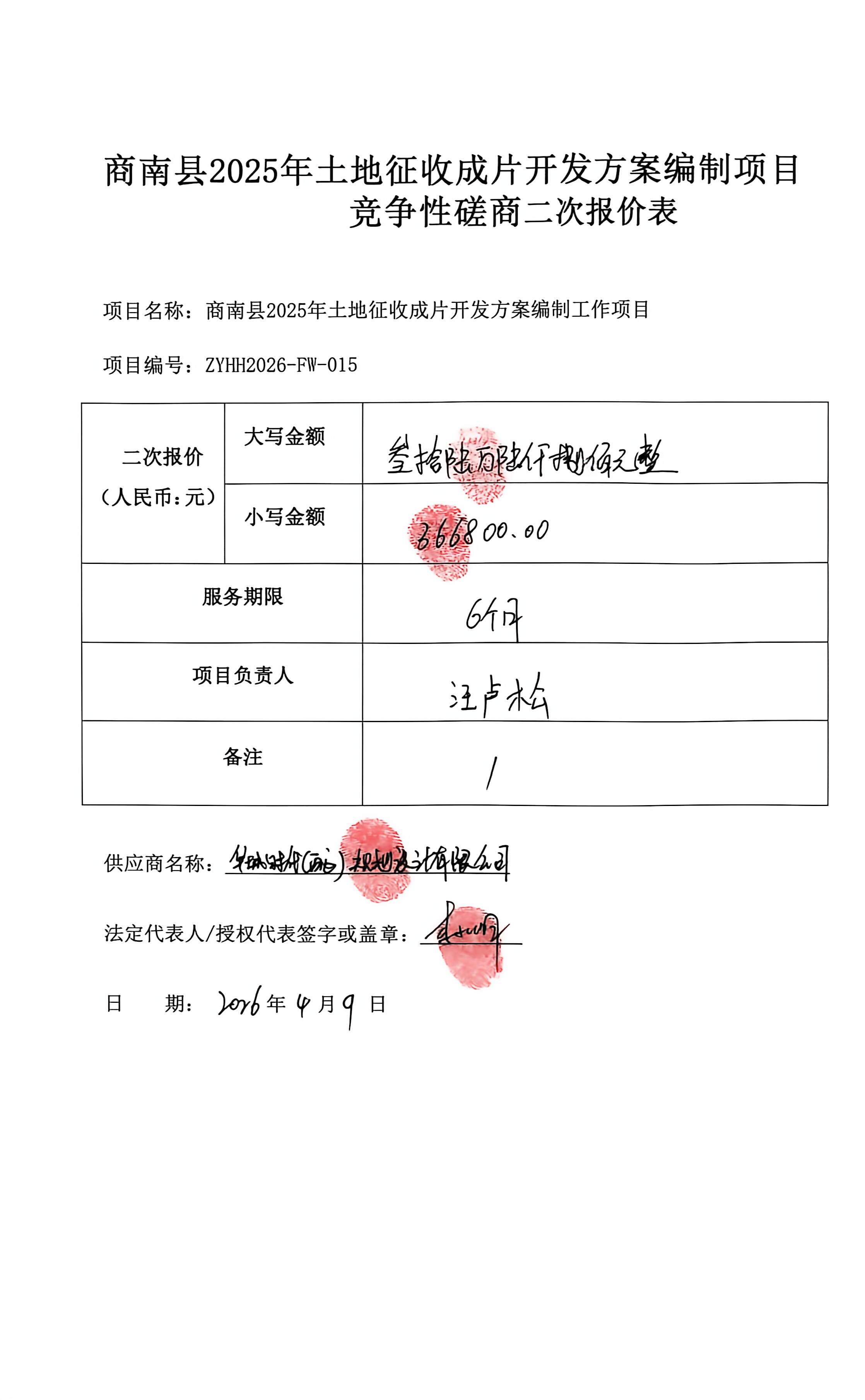 二、项目名称:商南县****年土地征收成片开发方案编制工作项目