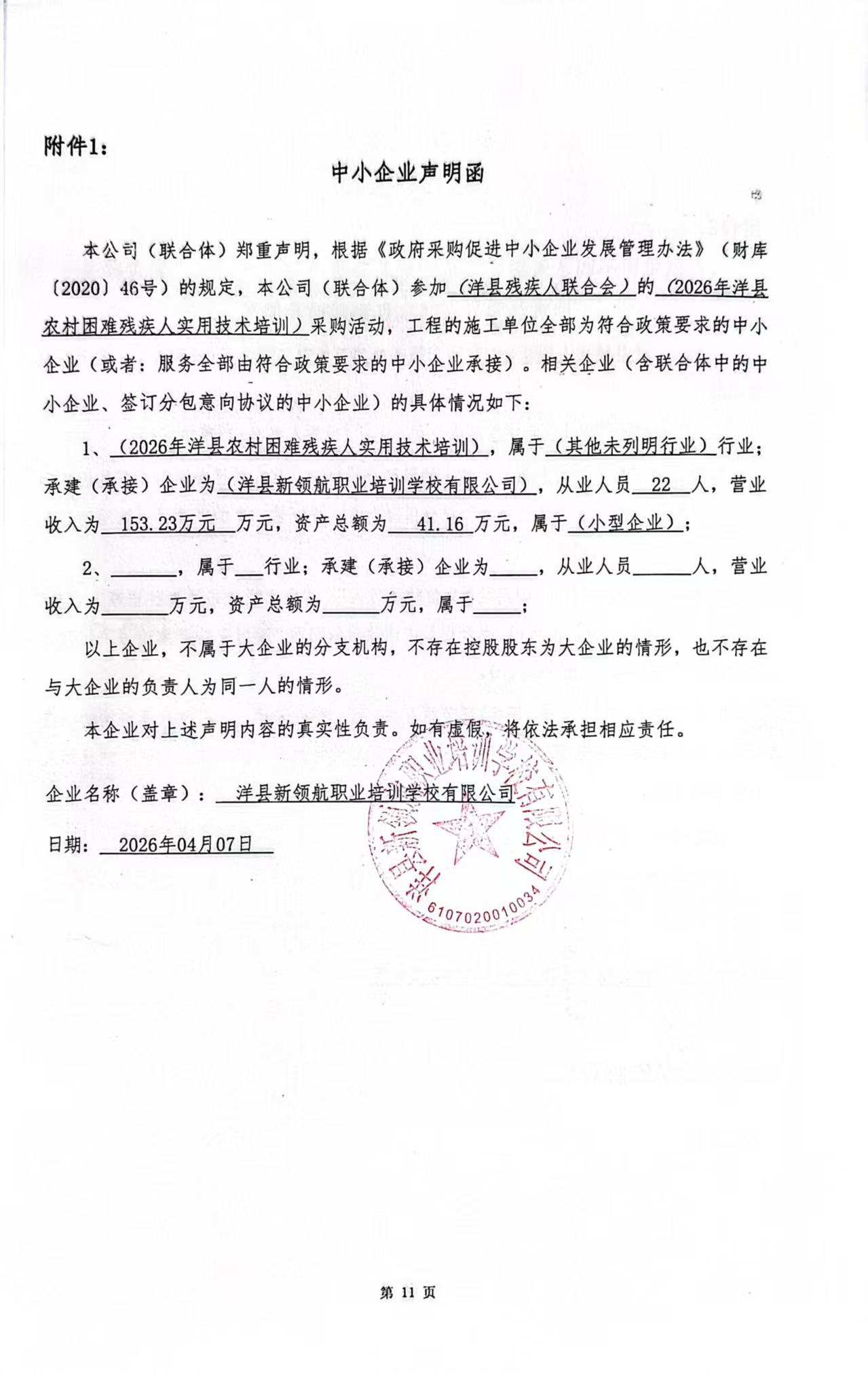 2026年洋县农村困难残疾人实用技术培训中标(成交)结果公告