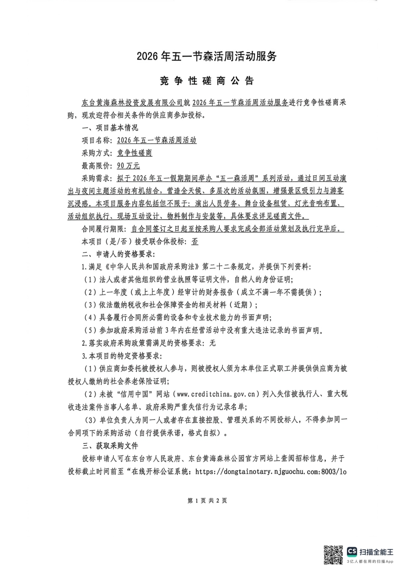 2026年五一节森活周活动服务竞争性磋商公告