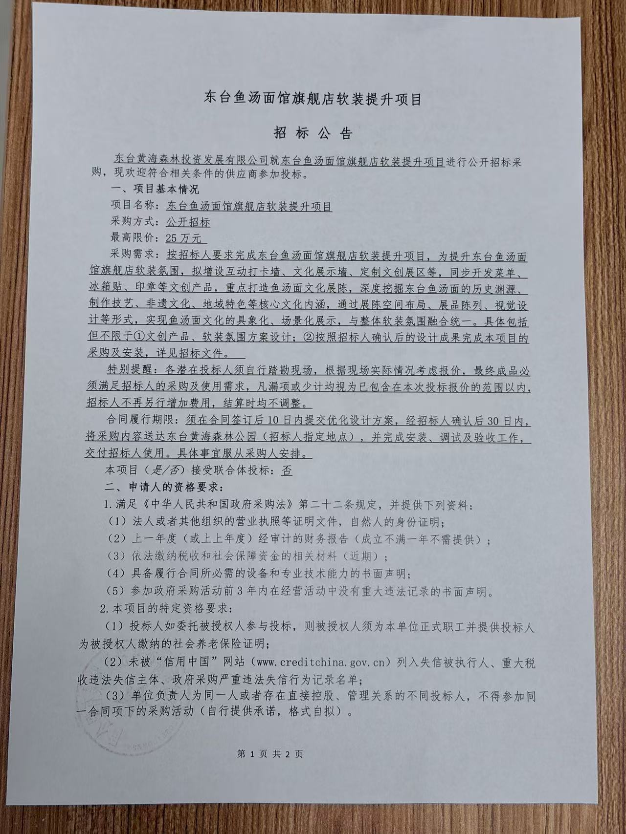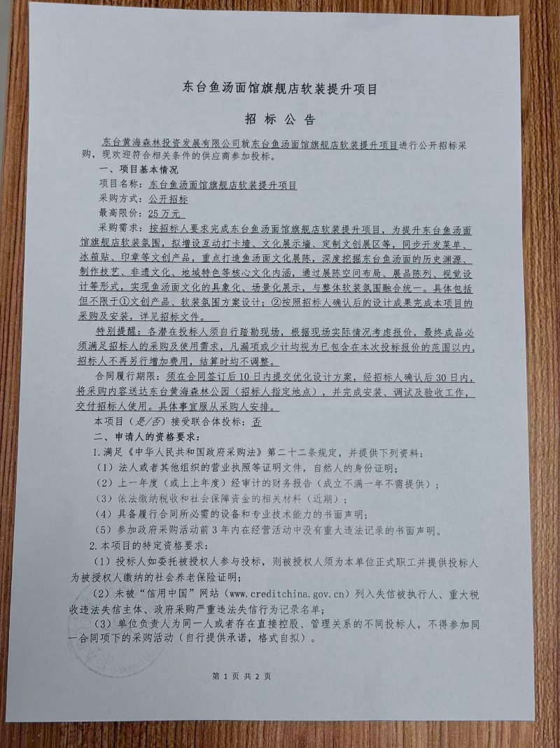 东台鱼汤面馆旗舰店软装提升项目招标公告