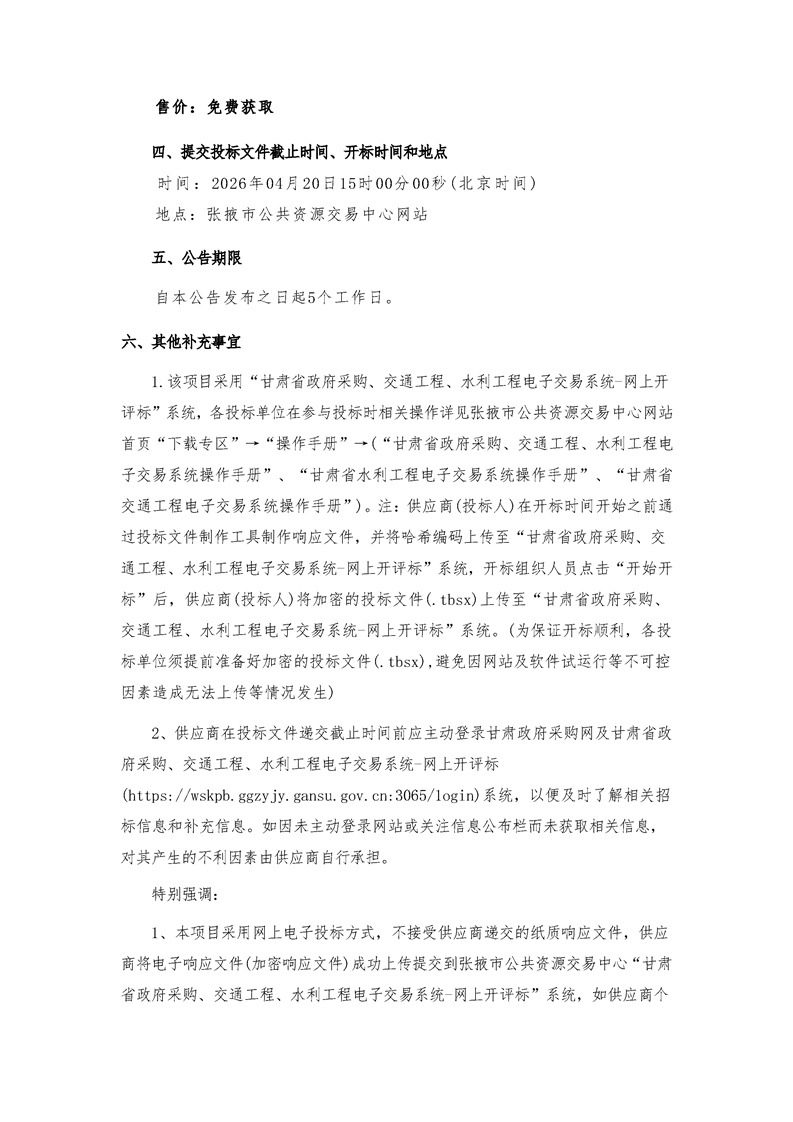交易平台:张掖市公共资源交易中心临泽县分中心招标/采购项目编号:********************投标登记截止时间:********** **:**:**