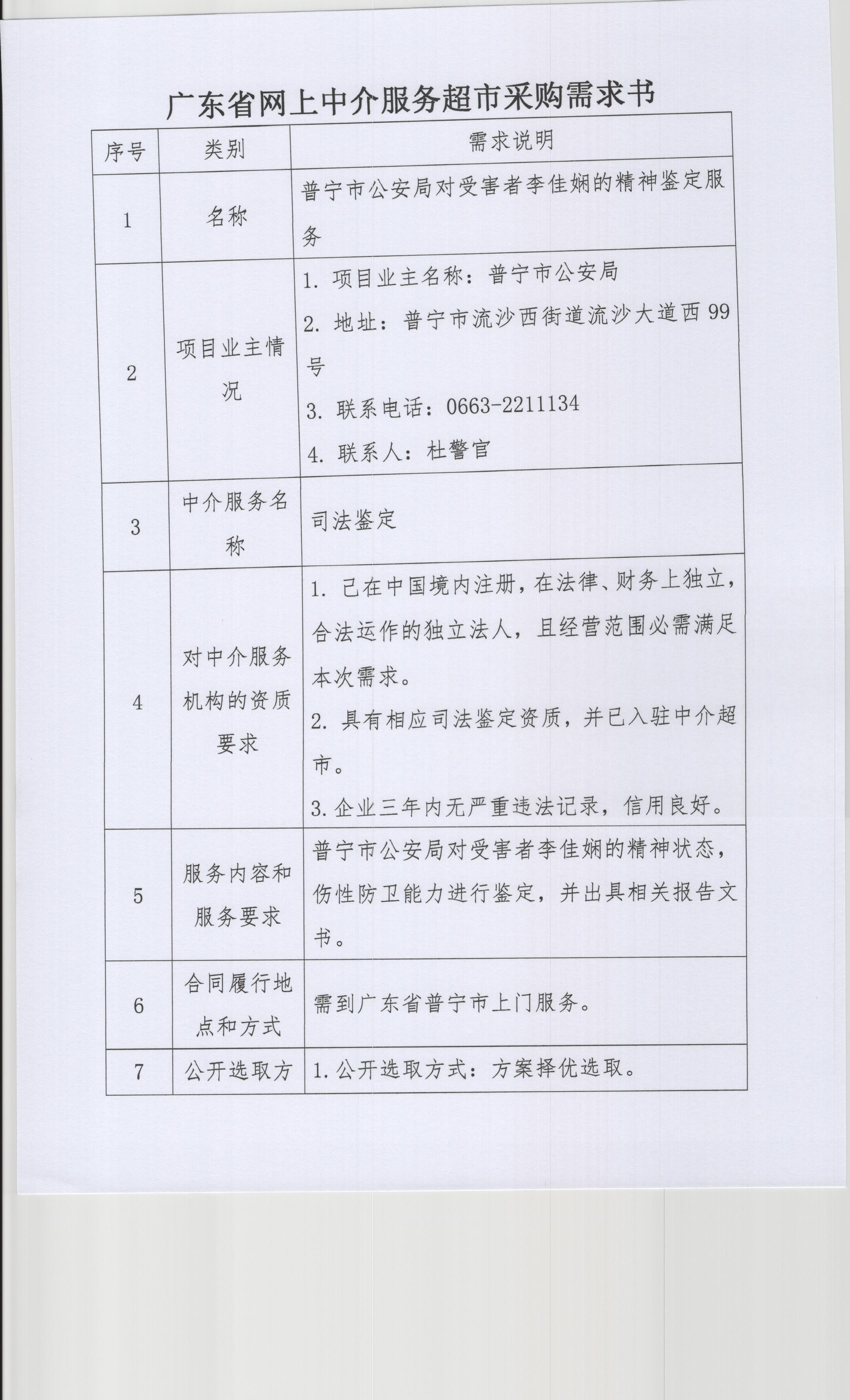 普宁市公安局对受害者李佳娴的精神鉴定服务采购公告