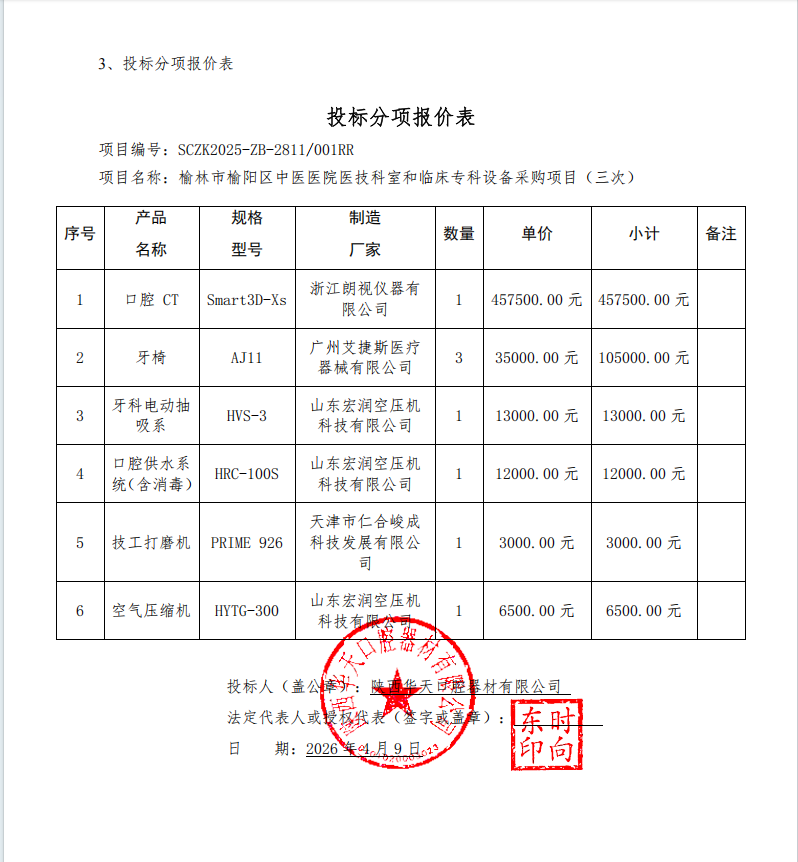 货物类(陕西华天口腔器材有限公司)