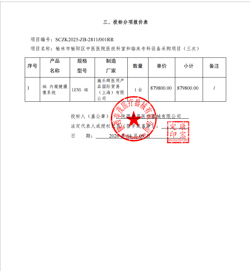 榆林市榆阳区中医医院榆阳区中医医院医技科室和临床专科设备采购项目(三次)中标(成交)结果公告