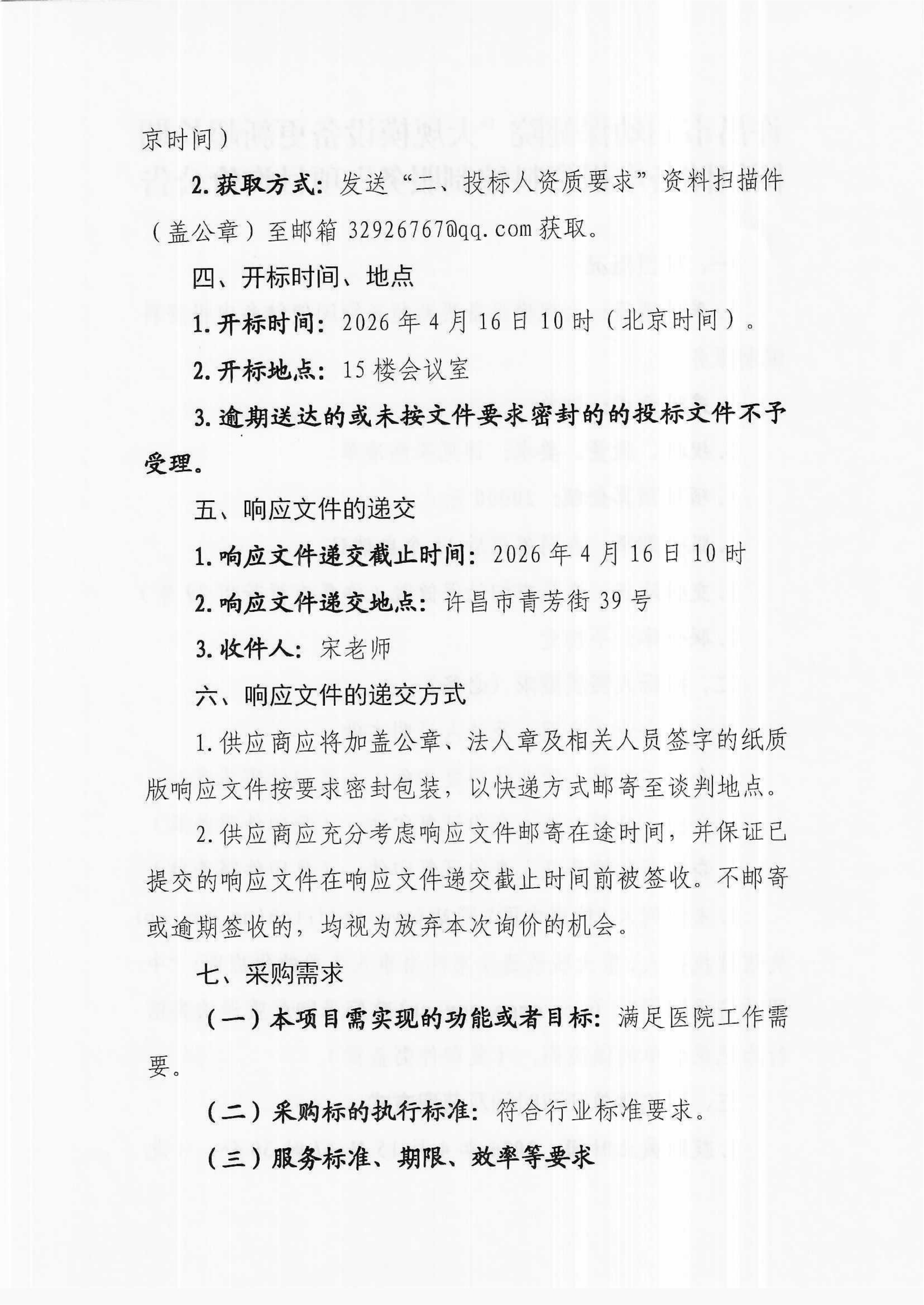 许昌市妇幼保健院“大规模设备更新超长期国债储备申报资料编制服务”项目询价公告