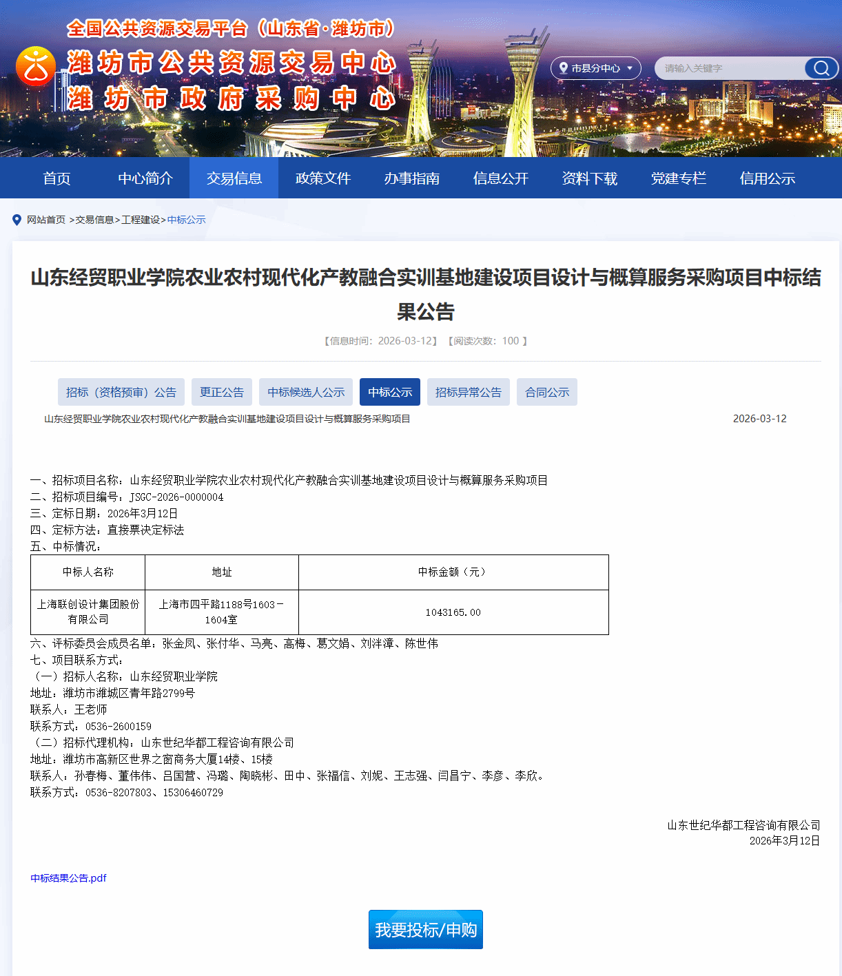 山东/潍坊 中标结果