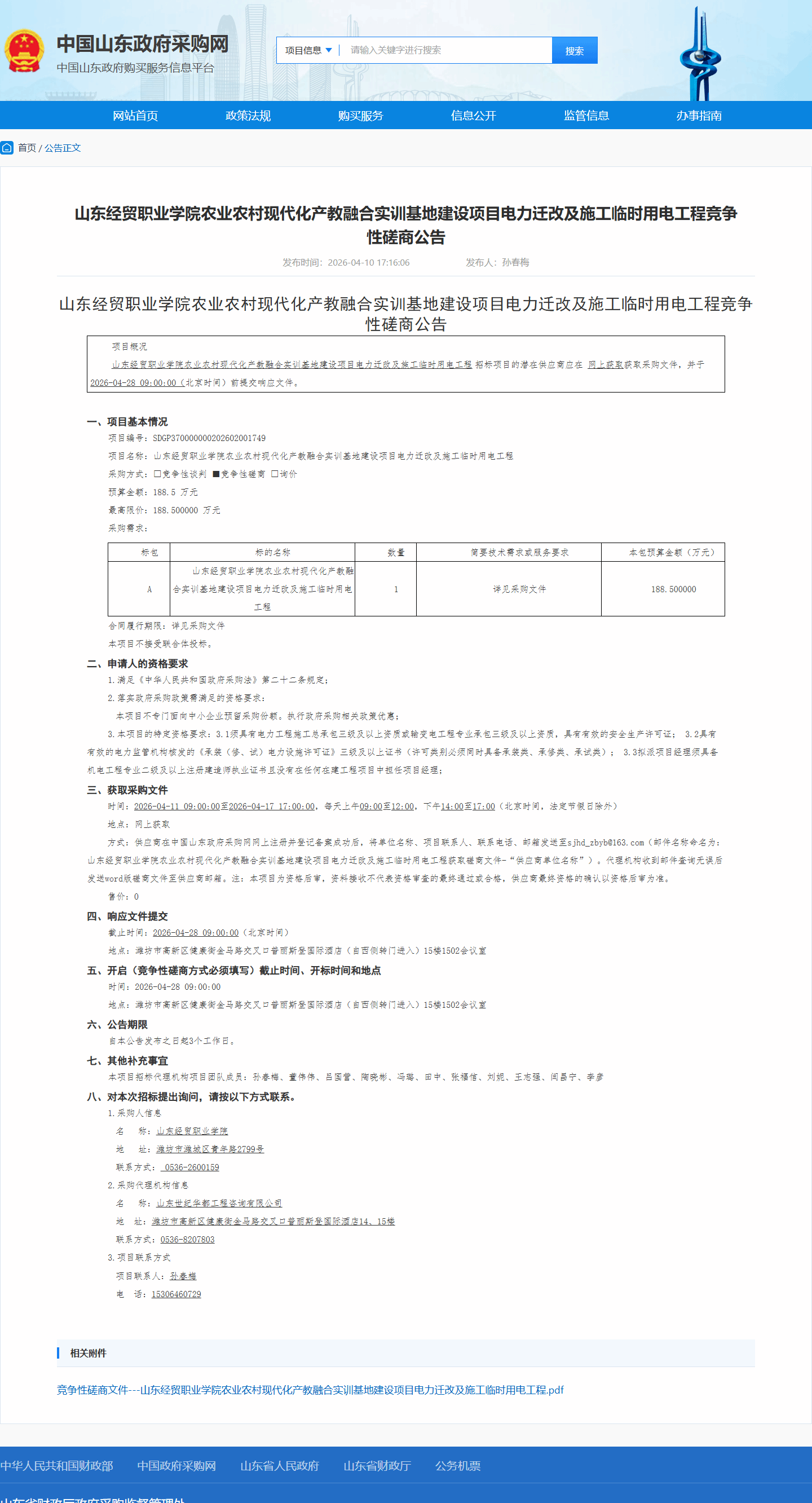 农业农村现代化产教融合实训基地建设项目电力迁改及施工临时用电工程竞争性磋商公告