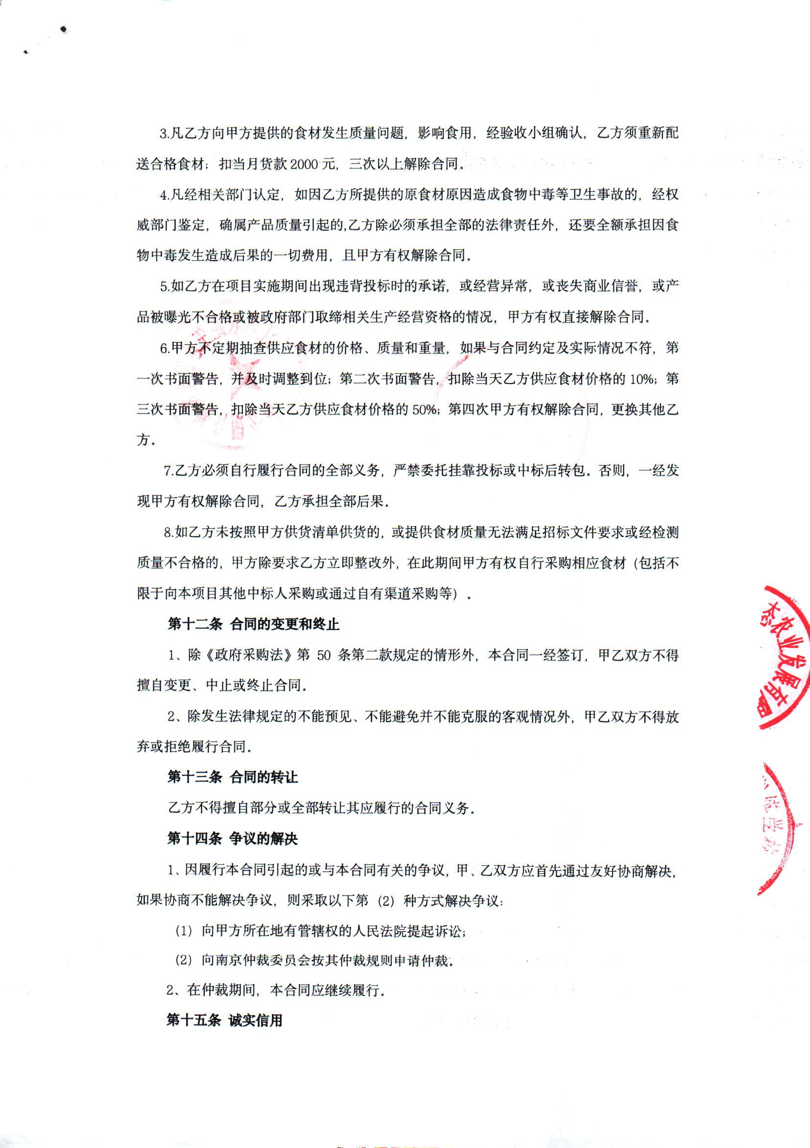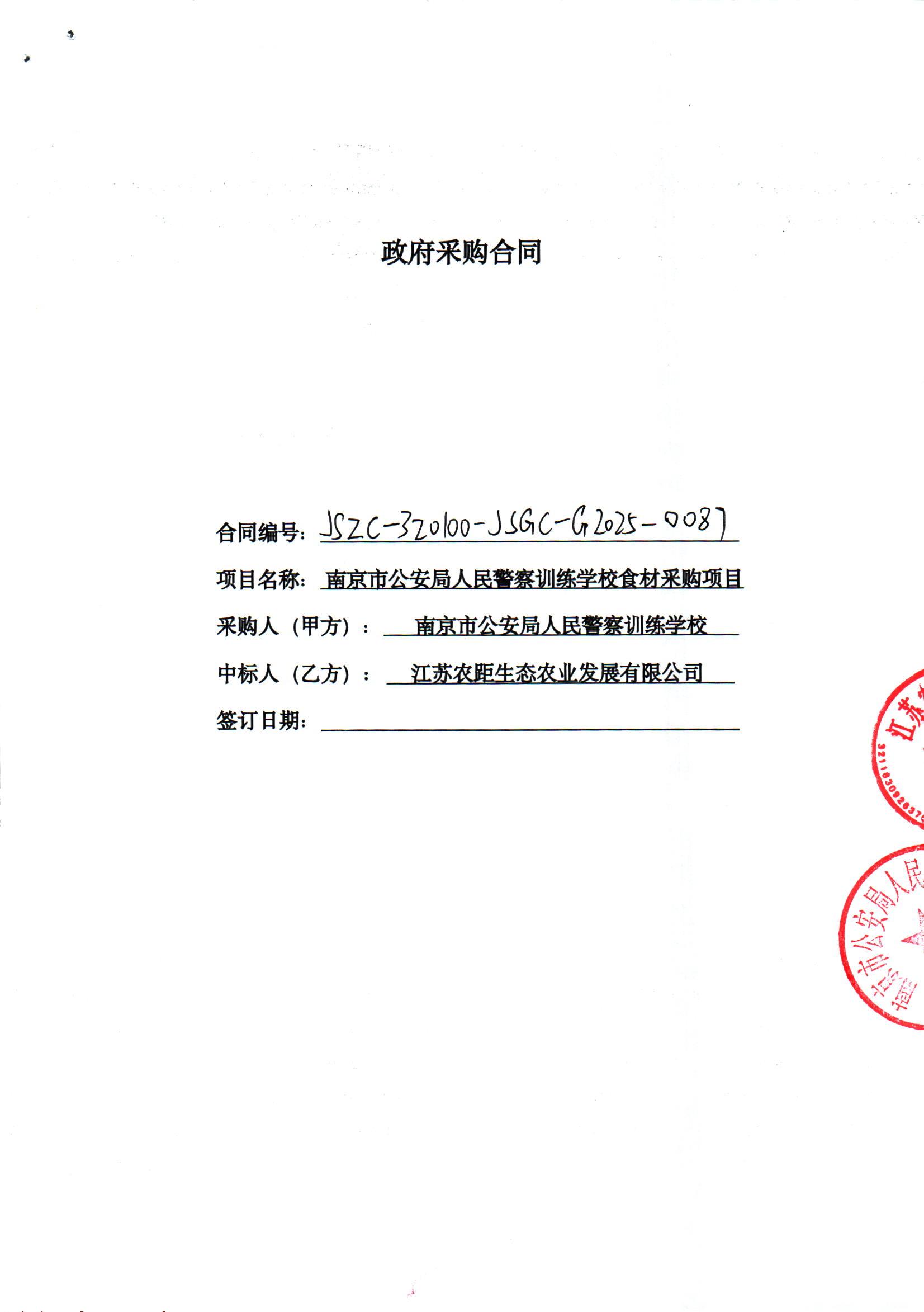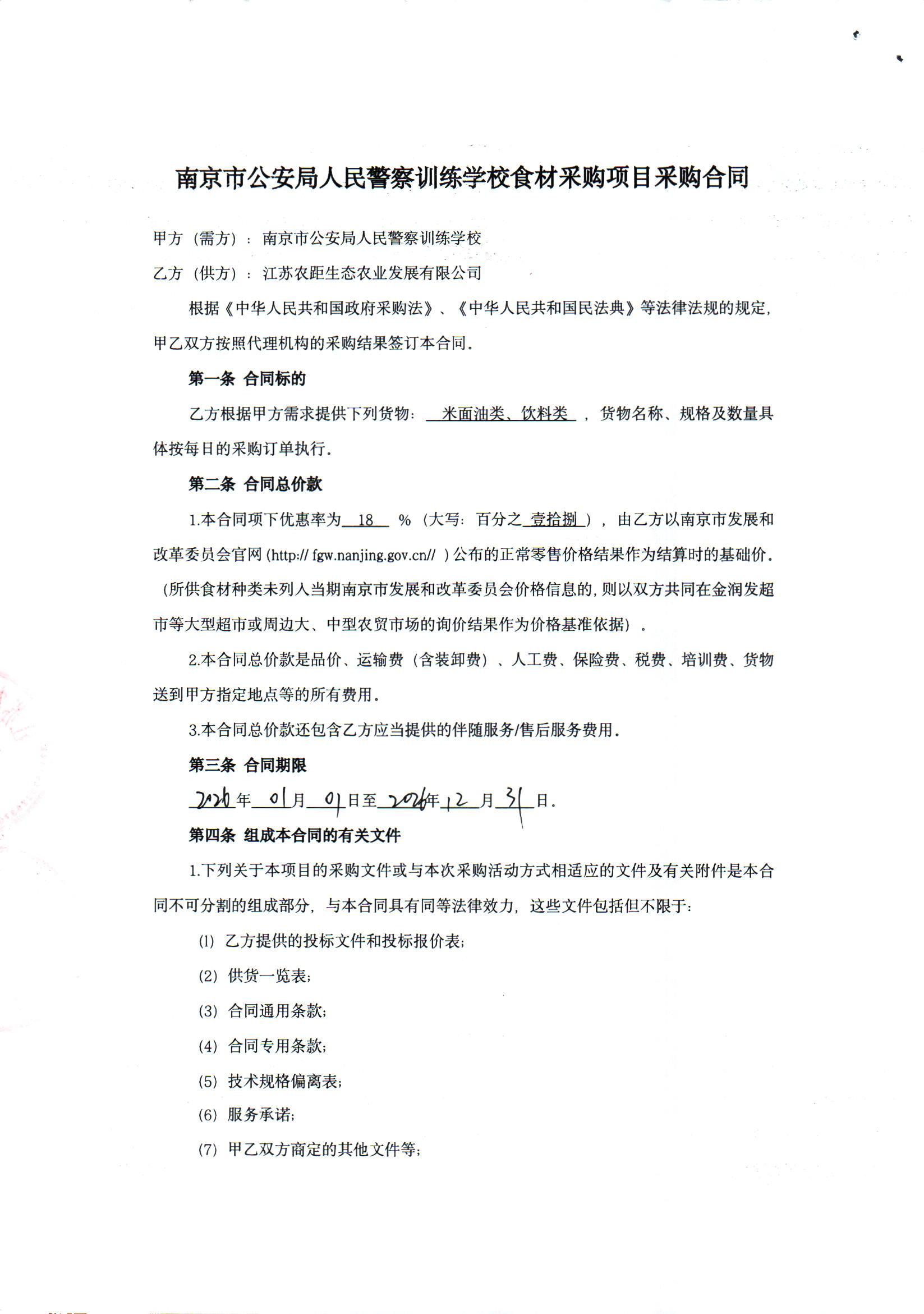 [市级]南京市公安局人民警察训练学校食材采购项目米面油类、饮料类合同