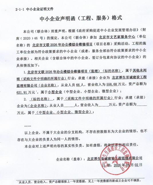 中标成交供应商名称:北京厚生至诚建设工程监理有限公司