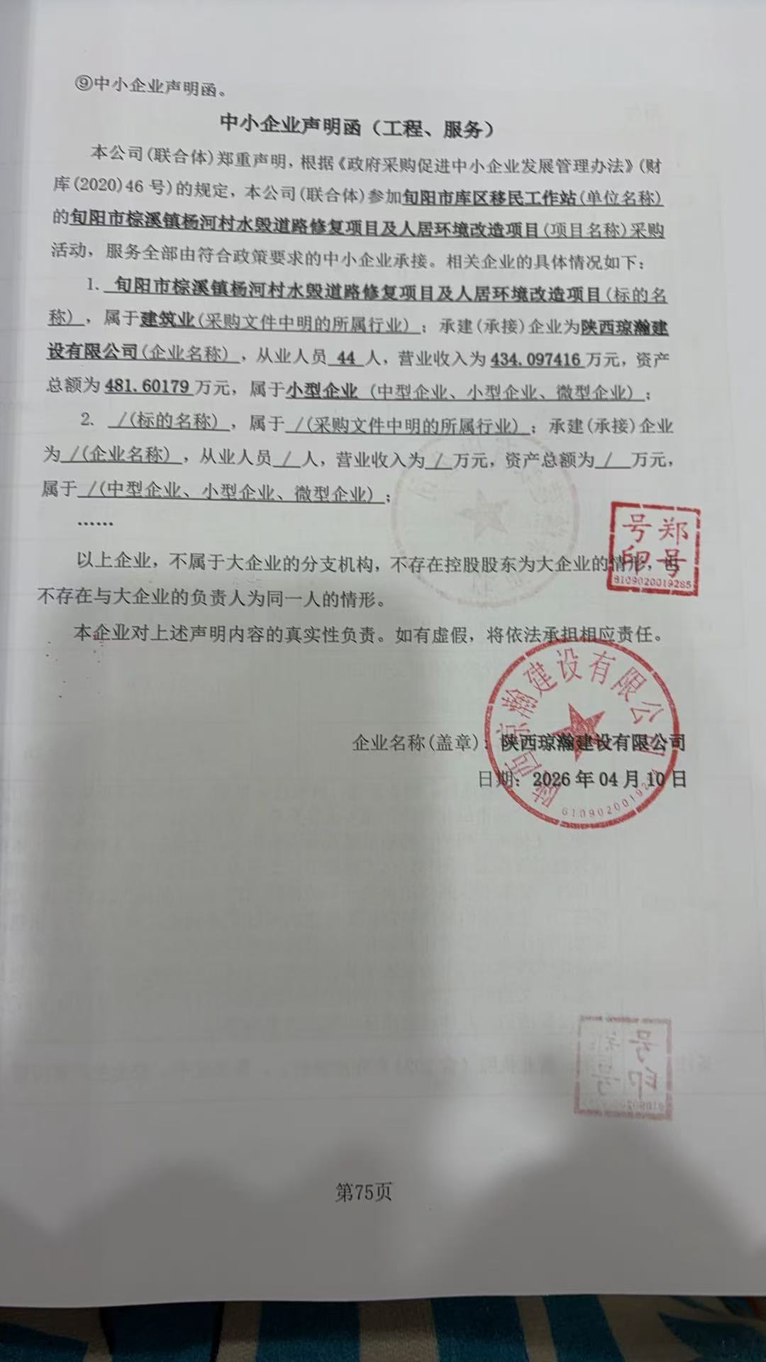 | * | 公路工程施工 | 旬阳市棕溪镇杨河村水毁道路修复项目及人居环境改造项目 | 旬阳市棕溪镇杨河村 | **个日历日 | 王康柱 | 陕************ | ***,***.** |