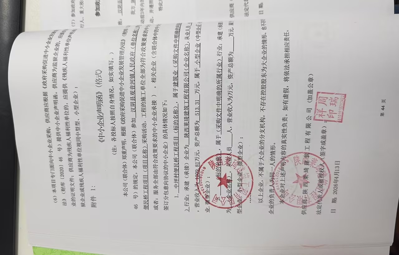 汉阴县观音河镇人民政府中坪村便民桥工程项目中标(成交)结果公告