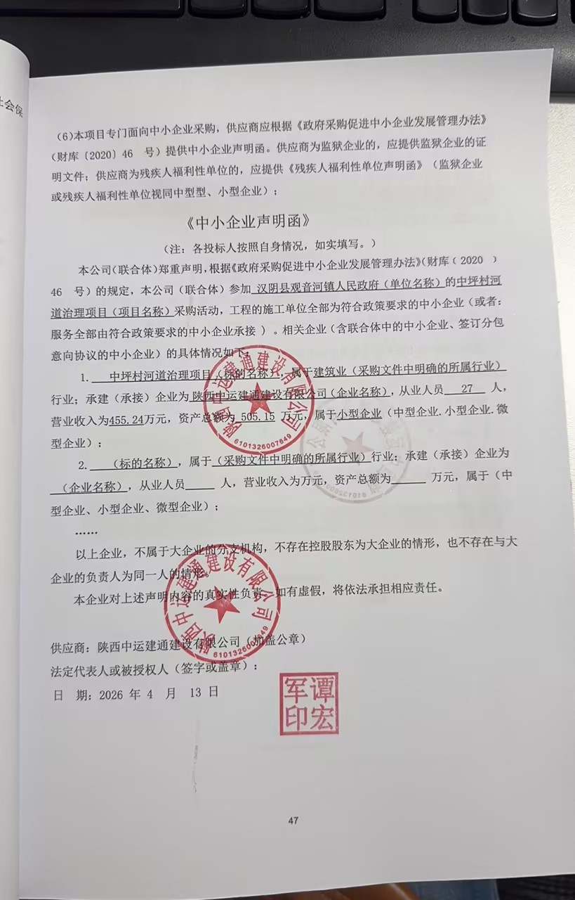 汉阴县观音河镇人民政府中坪村河道治理项目中标(成交)结果公告