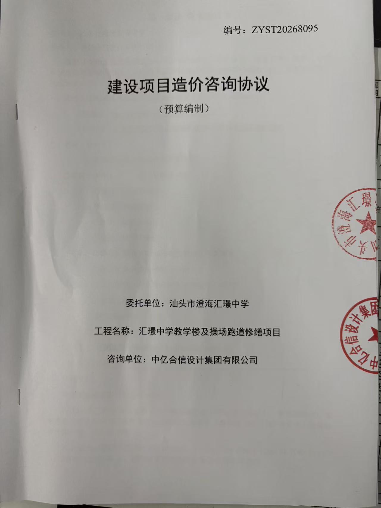 汇璟中学教学楼及操场跑道修缮项目(预算编制)合同公开