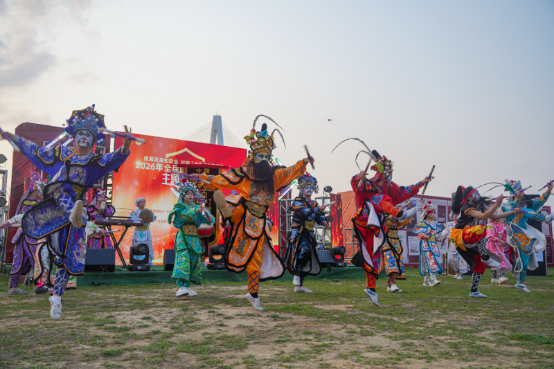 下午*:**,夕阳映照着礐石大桥,活动在气势恢宏的二十四节令鼓表演中拉开帷幕。铿锵有力的鼓声融入国家安全元素,既展现了昂扬向上的精神风貌,也传递出守护国家安全的坚定决心。随后登场的英歌舞气势磅礴、刚劲豪迈,演员们步伐整齐、气势如虹,尽显“中华战舞”的独特魅力,瞬间点燃现场气氛。紧接着,多组紧扣国家安全与爱国主题的音乐节目轮番上演,旋律昂扬,让观众在视听享受中接受爱国主义和国家安全教育。穿插进行的国家安全知识有奖问答互动性强,市民群众积极作答,在轻松愉悦的互动氛围中深化了对国家安全知识的理解与记忆。