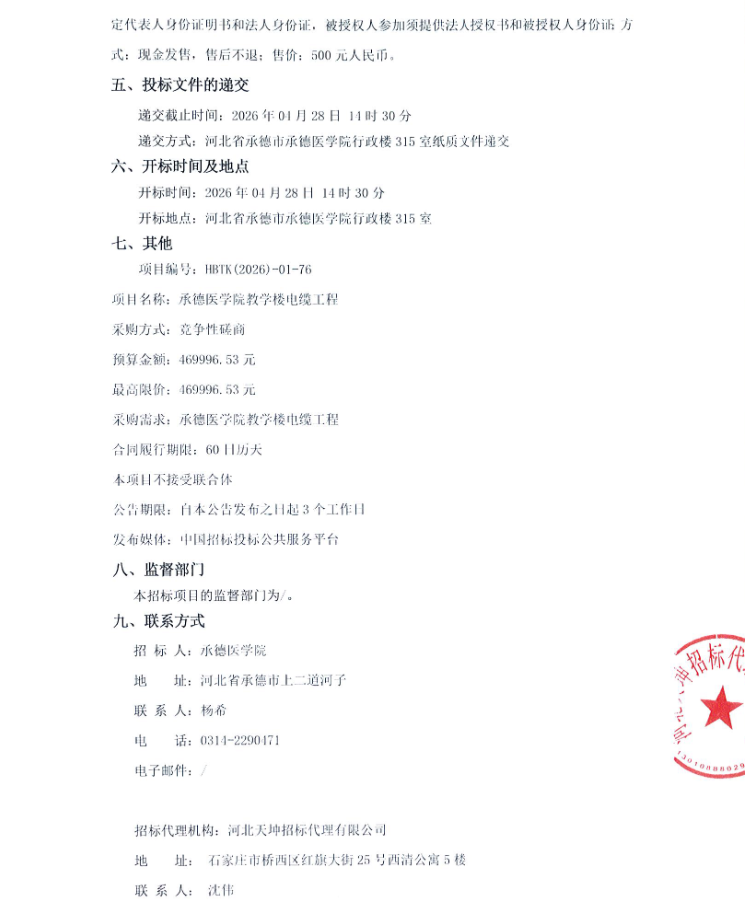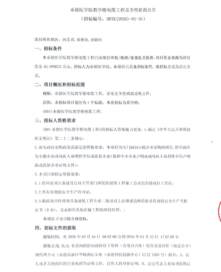 医学院教学楼电缆工程竞争性磋商公告