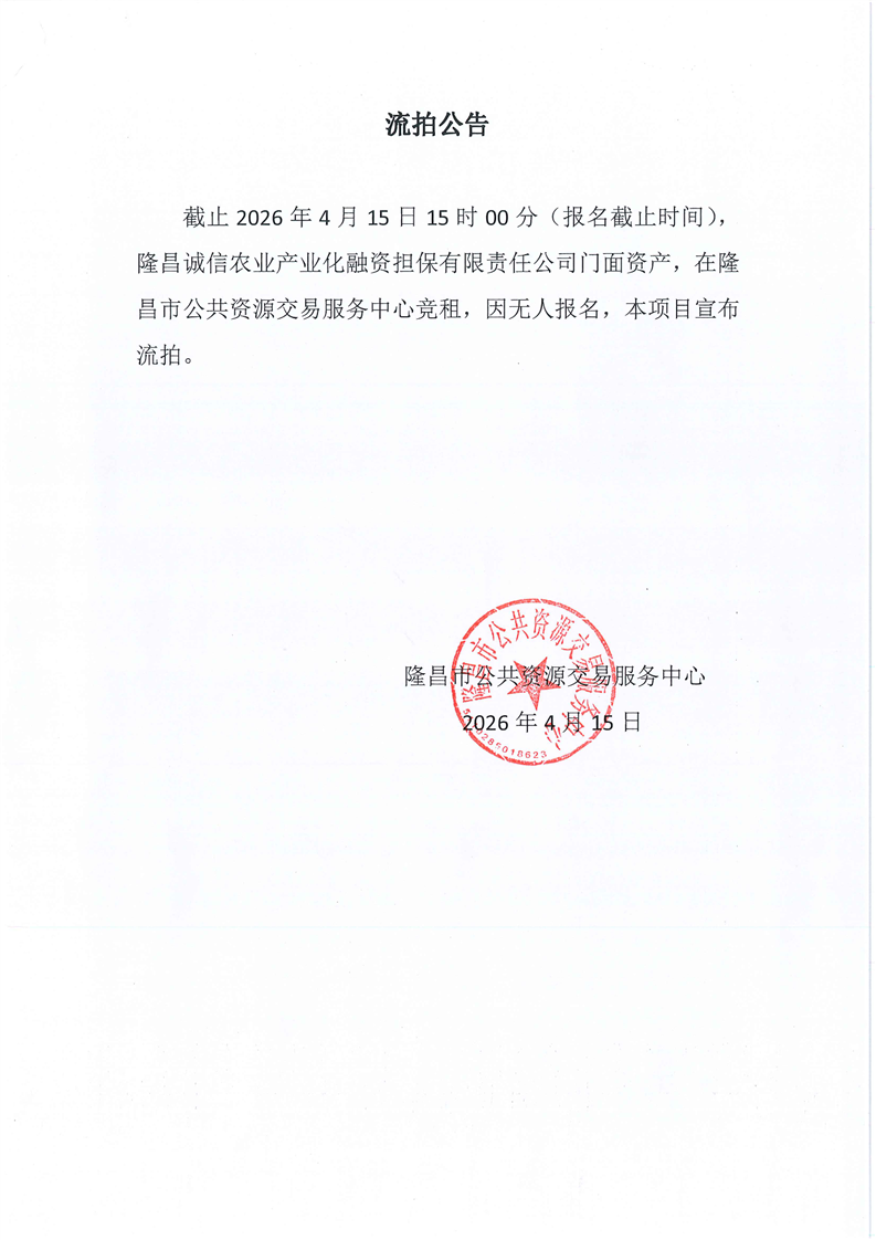 LCJY(2026)C030隆昌诚信农业产业化融资担保有限责任公司门面资产竞租流拍公告