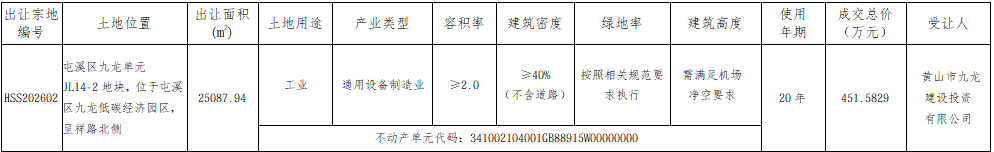 【中标公示】黄山市中心城区国有建设用地使用权挂牌成交结果公示(*************)【市本级】【公告中】