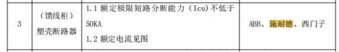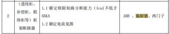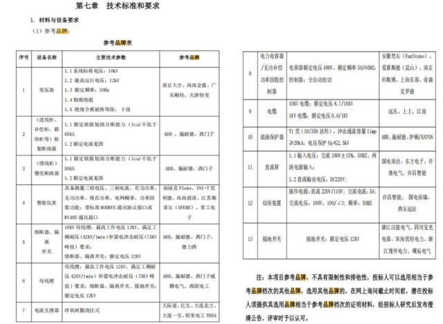 **、招标文件第七章“参考品牌表”中没有高压真空断路器的参考品牌,请明确。