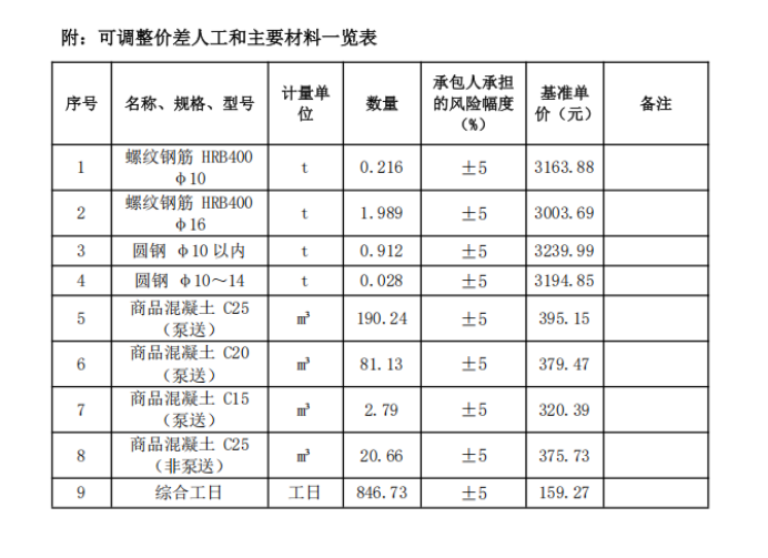 *、招标文件***页如下图有可调整价差人工和主要材料一览表,发布的工程量清单文件无可调整价差人工和主要材料一览表。请问本项目是否有可调整价差人工和主要材料一览表?若有,是否按招标文件可调整价差人工和主要材料一览表?