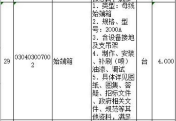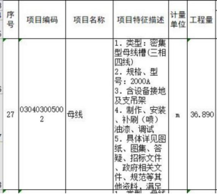 **、工程量清单序号**母线槽是指哪里的连接?