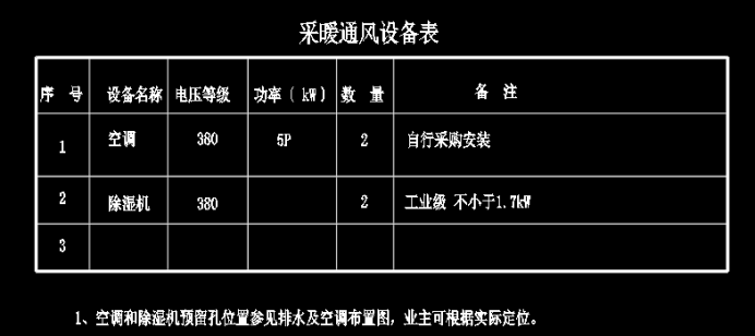 **、招标工程量清单中,备品备件中包含空调及除湿机,请明确空调及除湿机功率及数量。