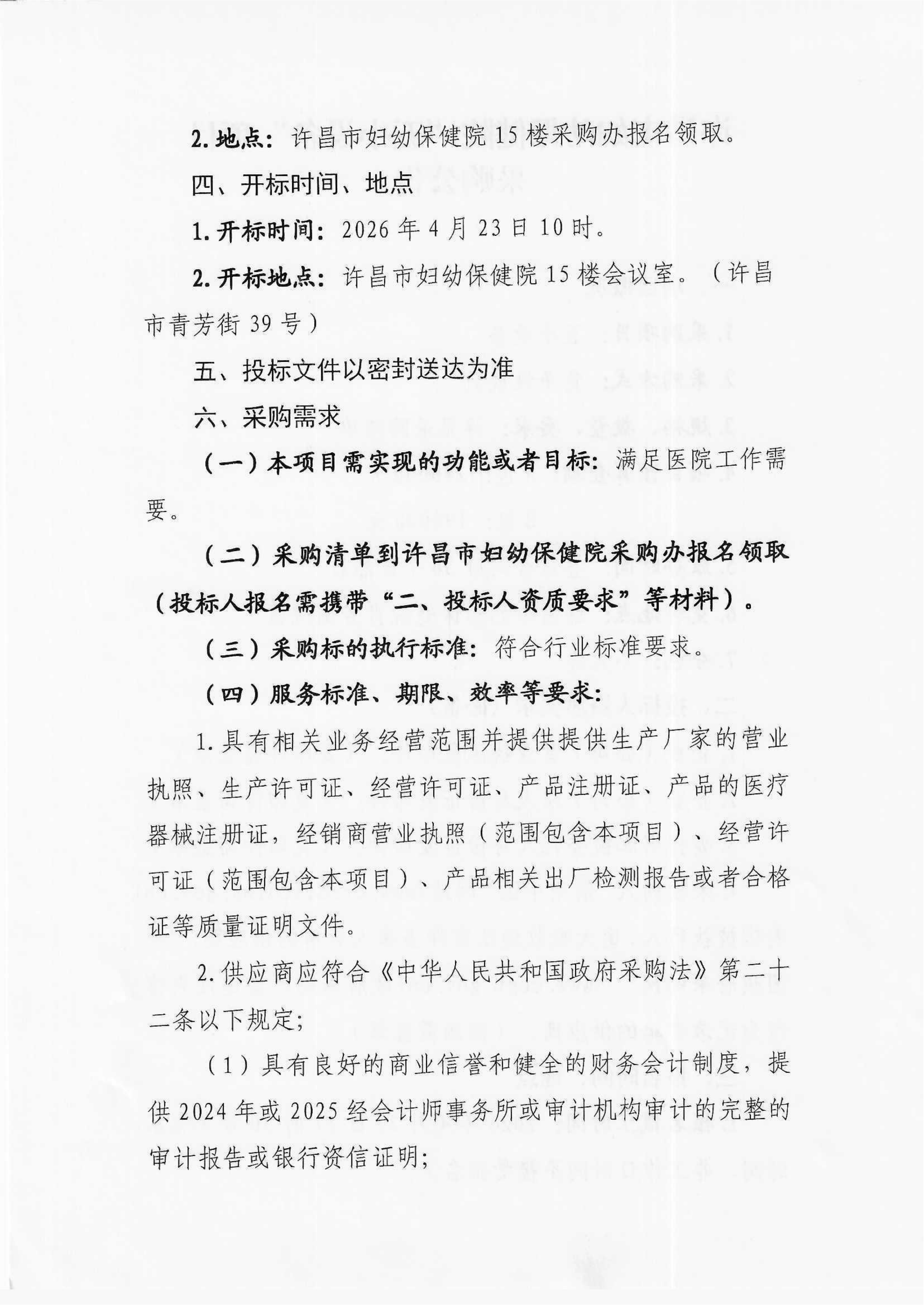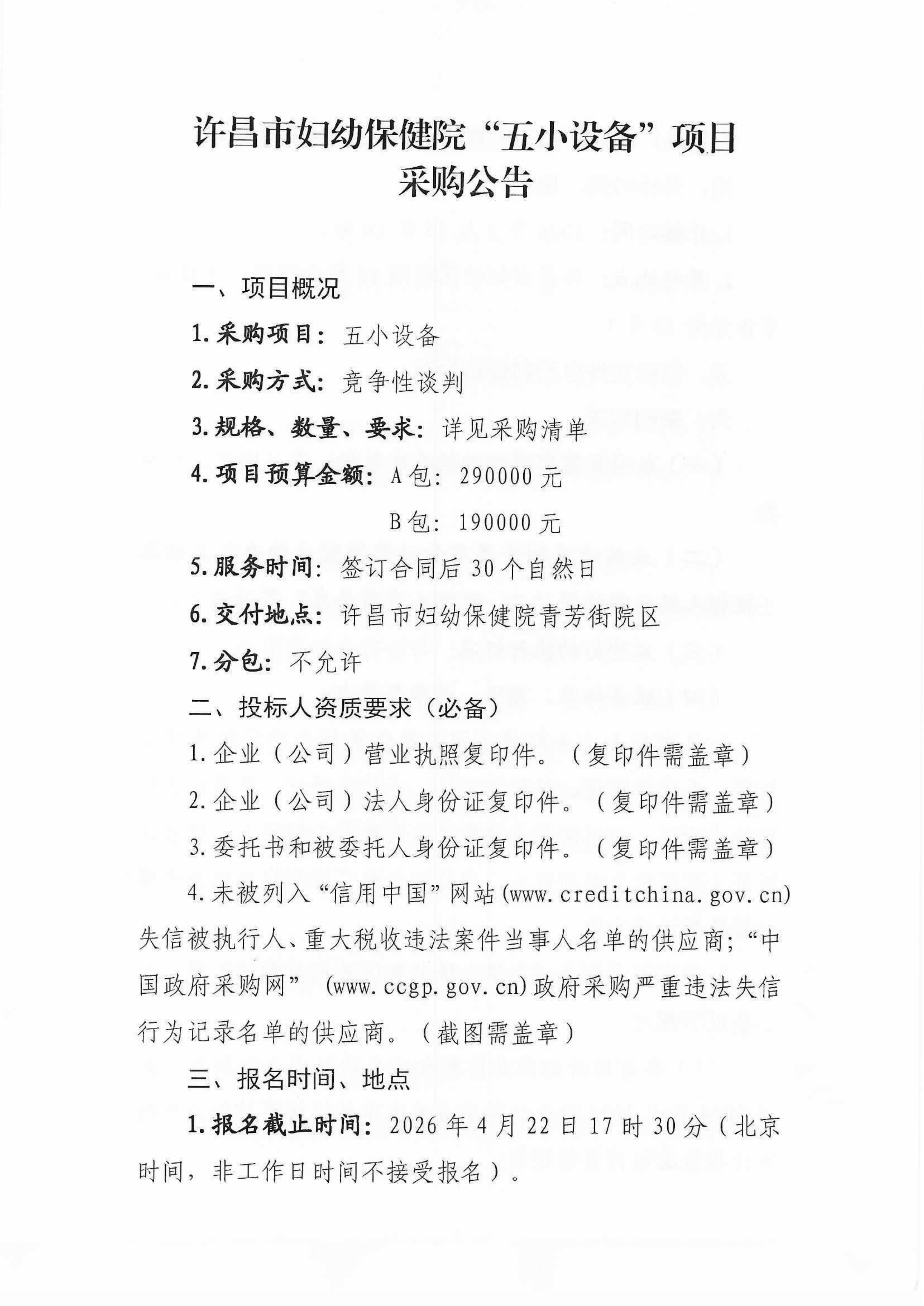 许昌市妇幼保健院“五小设备”项目采购公告