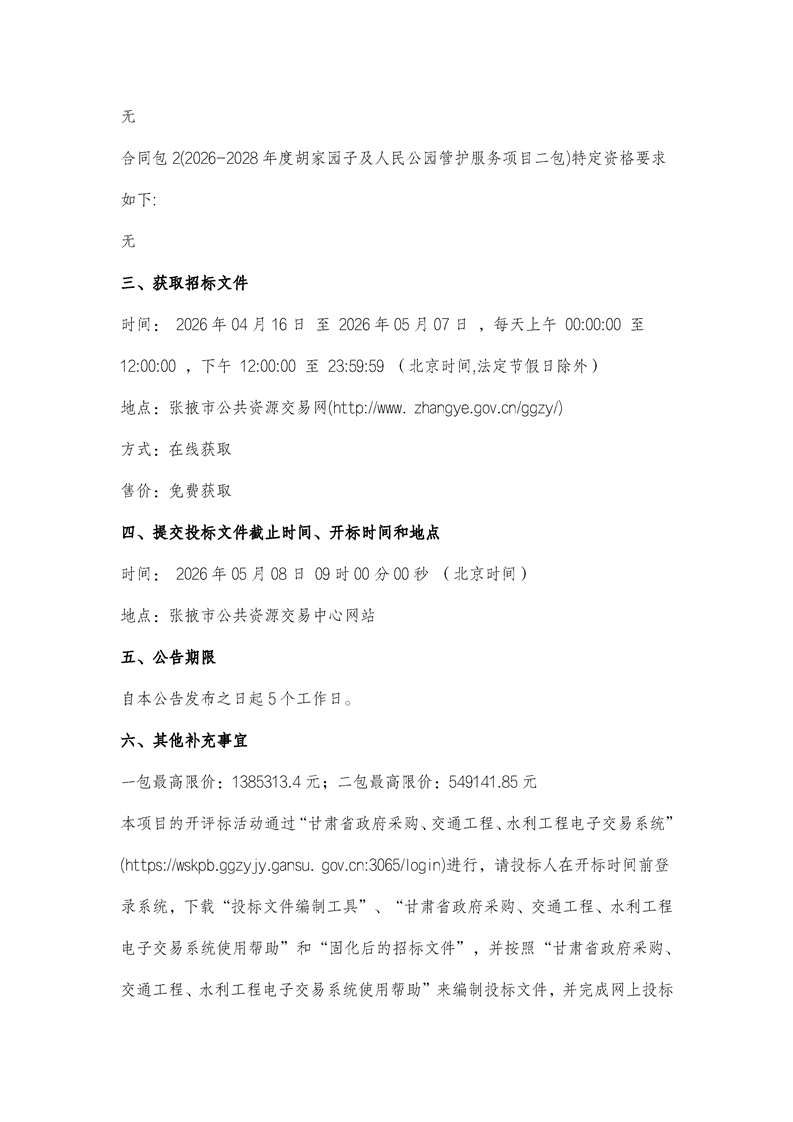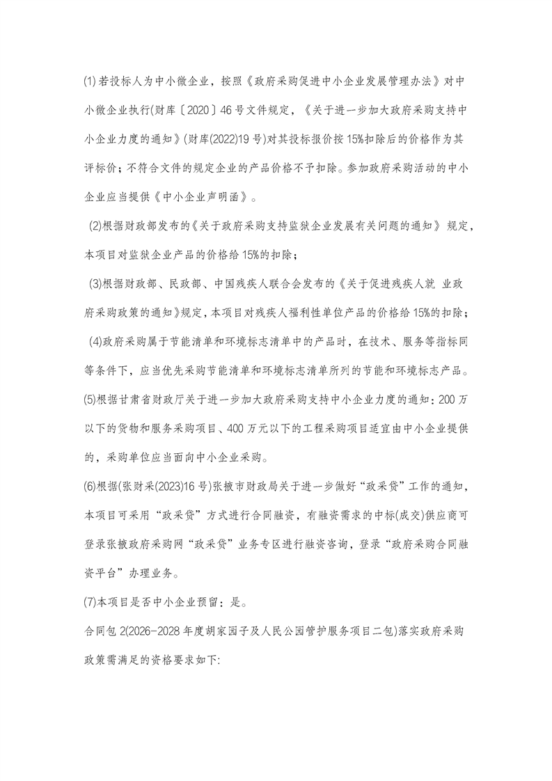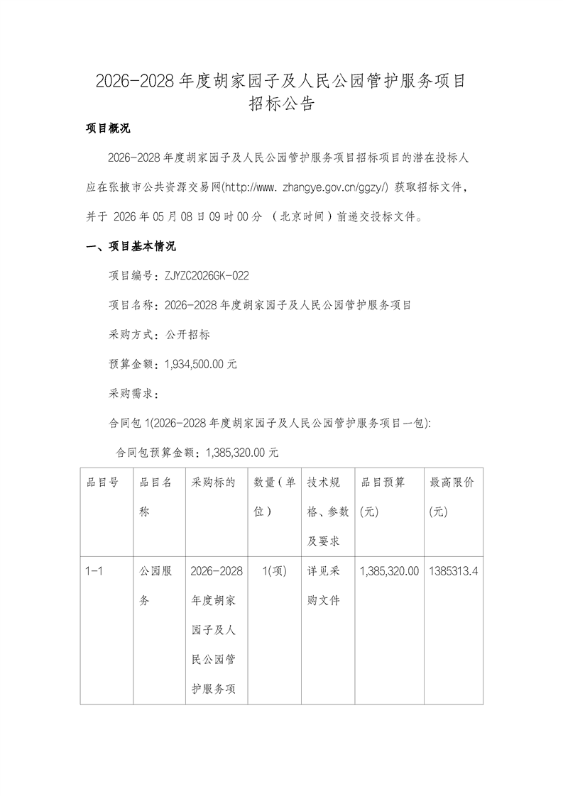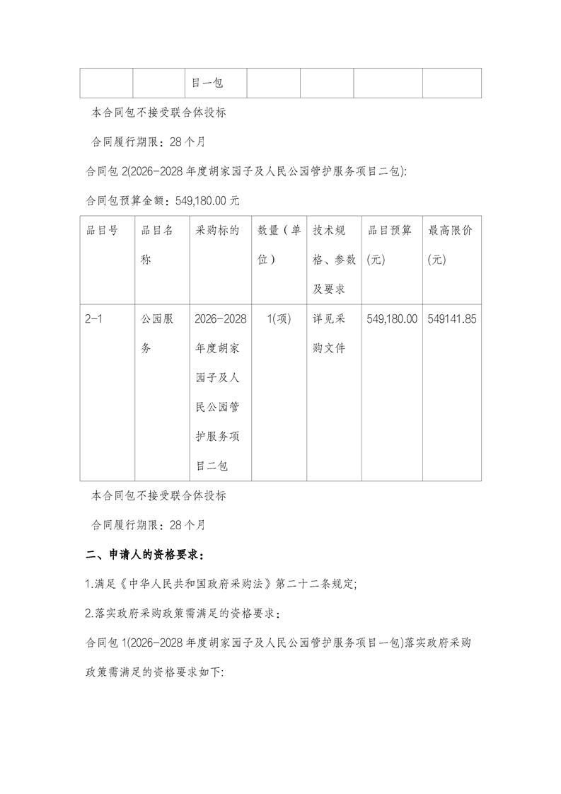 2026-2028年度胡家园子及人民公园管护服务项目招标公告{type}