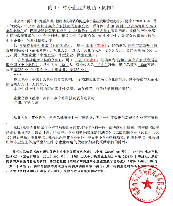 八、预成交供应商:深圳市高立升科技发展有限公司