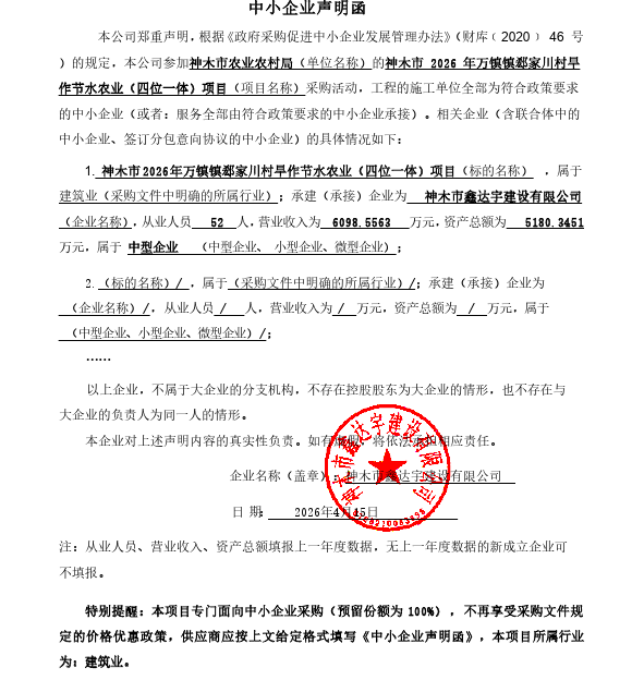 神木市农业农村局神木市2026年万镇镇郄家川村旱作节水农业(四位一体)项目中标(成交)结果公告