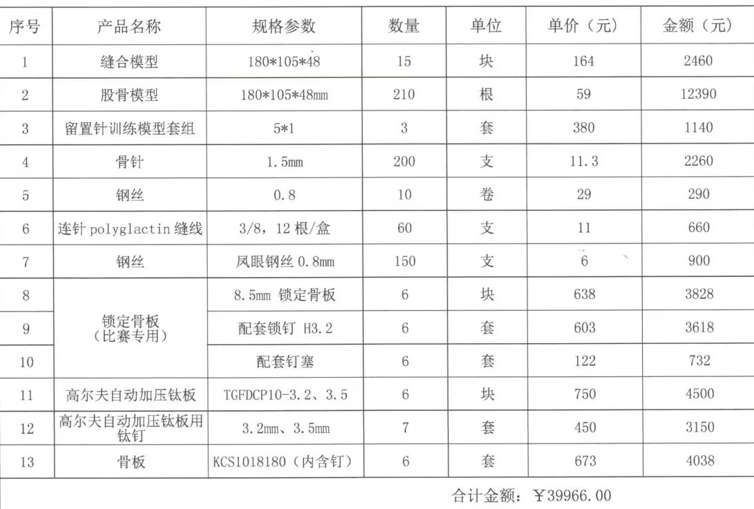 第十届骨科专赛比赛专用耗材采购项目校内单一来源采购成交公告