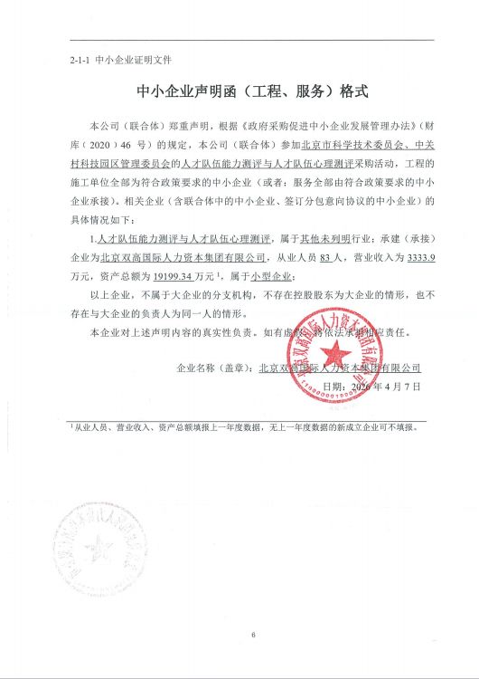 中标成交供应商名称:北京双高国际人力资本集团有限公司