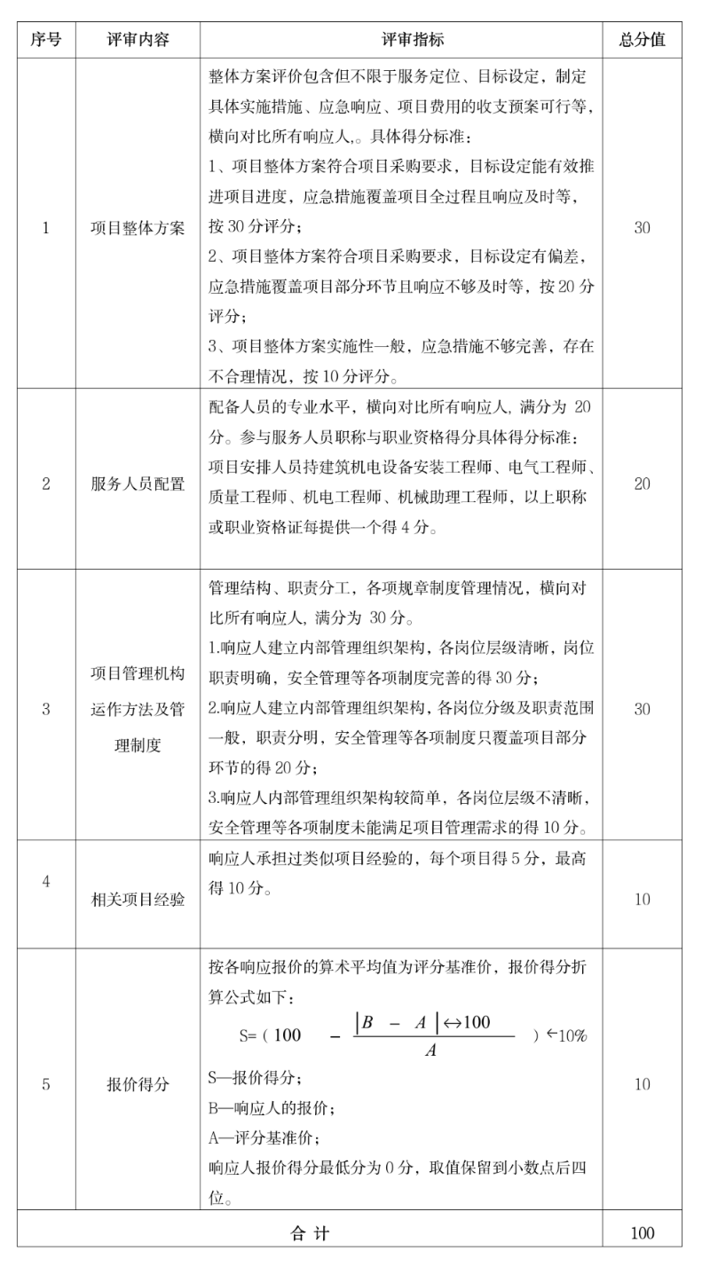 电梯设施设备维保维修服务通过政府门户网站发出招标公告,在三家及以上的投报机构中根据服务评分表进行评选,确认最高得分为中选供应商。