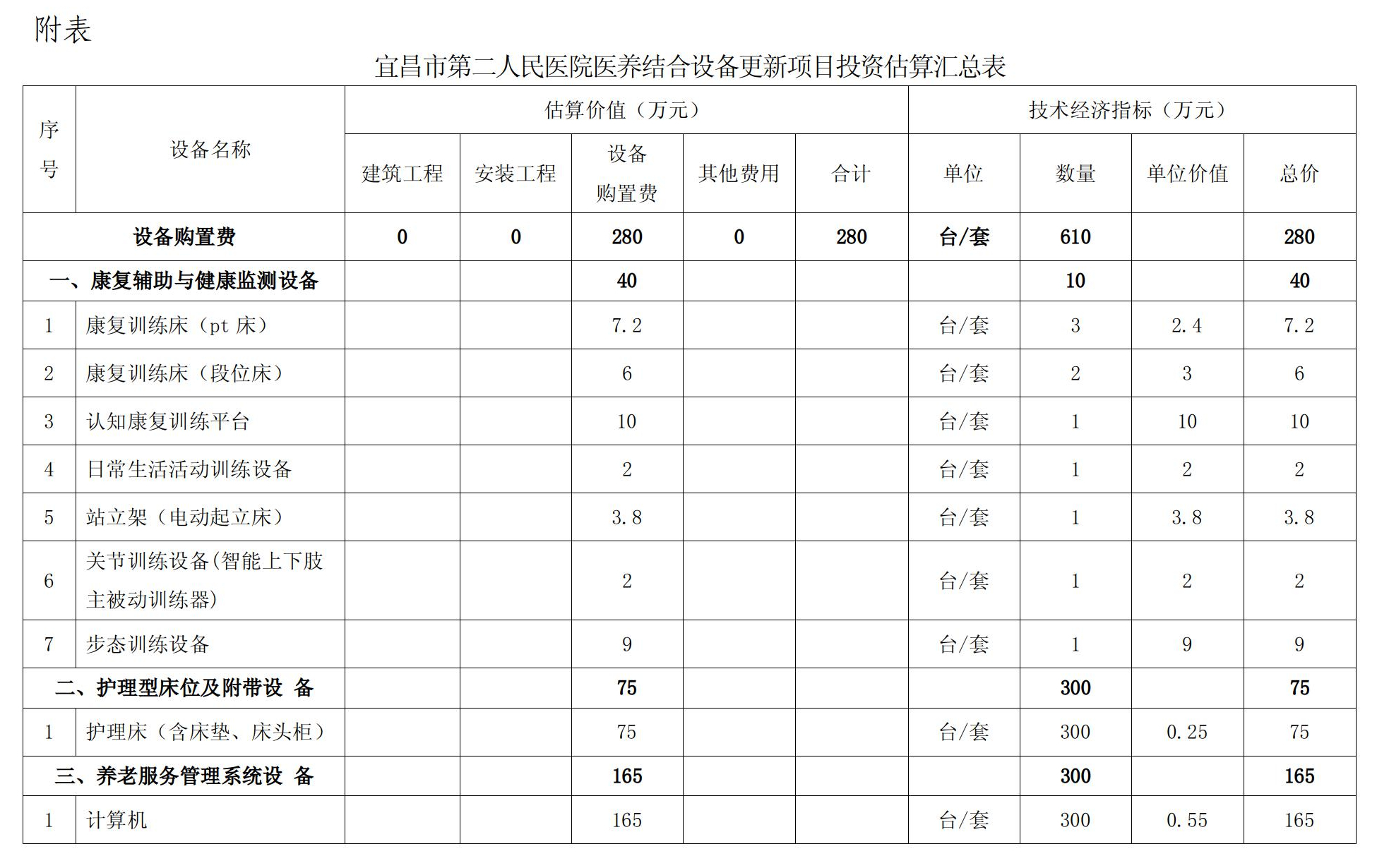 项目名称:宜昌市第二人民医院医养结合设备更新项目