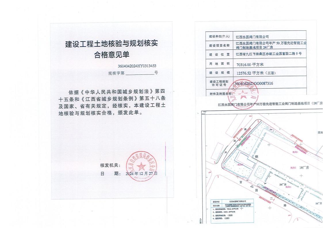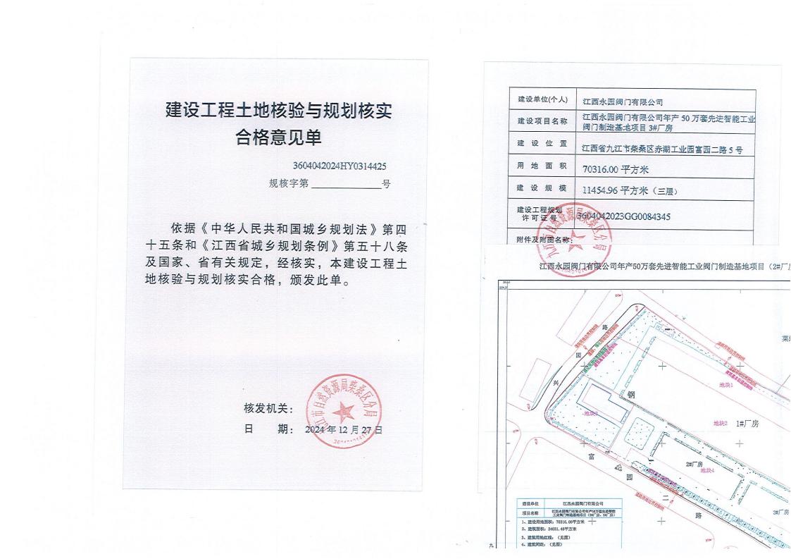 江西永园阀门有限公司年产50万套先进智能工业阀门制造基地项目2#厂房、3#厂房土地核验与规划核实结果公示
