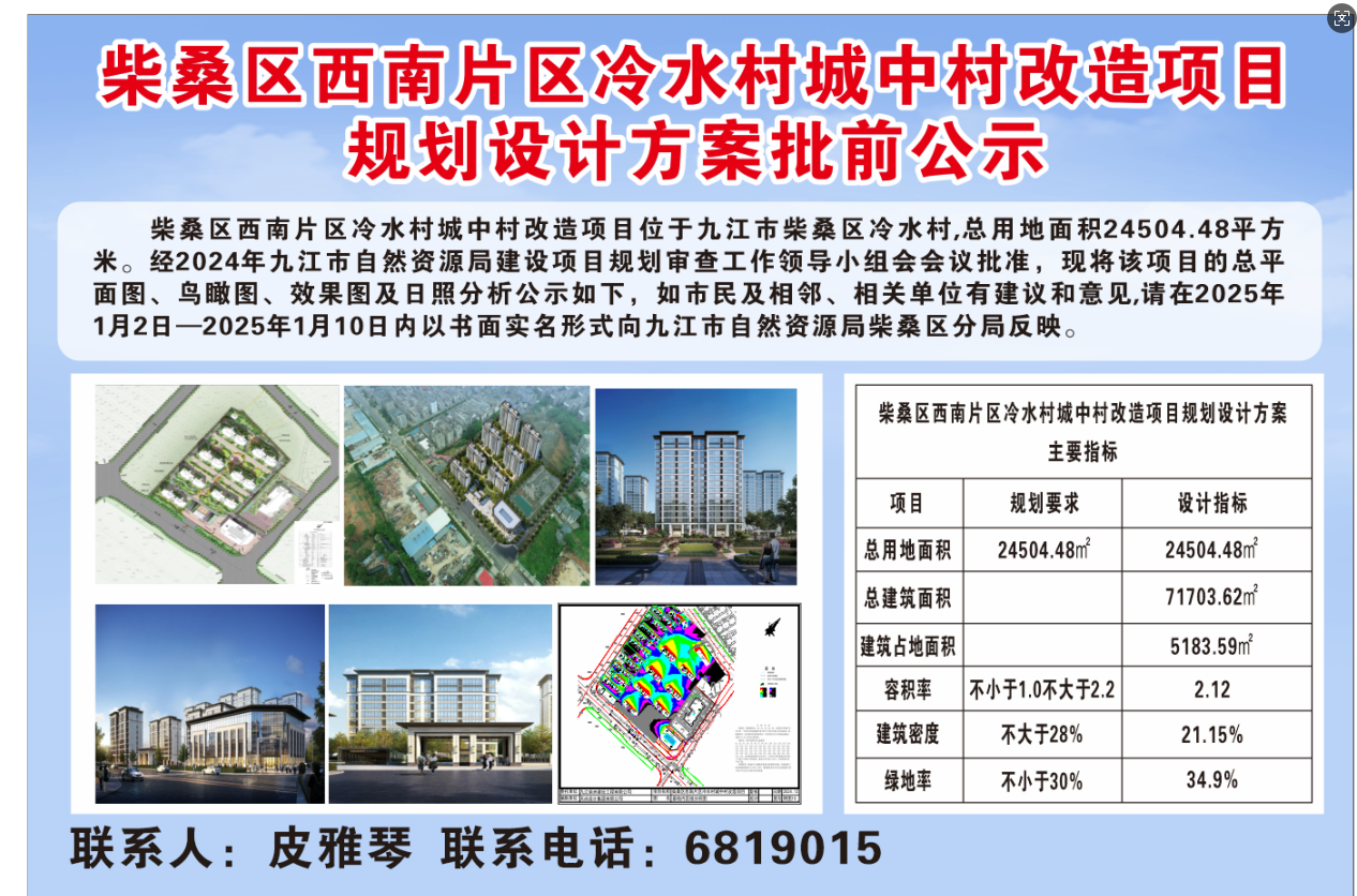 柴桑区西南片区冷水村城中村改造项目规划设计方案批前公示