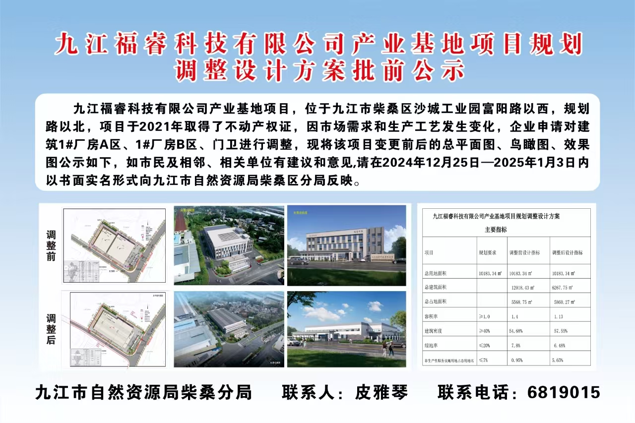 九江福睿科技有限公司产业基地项目规划设计方案批前公示